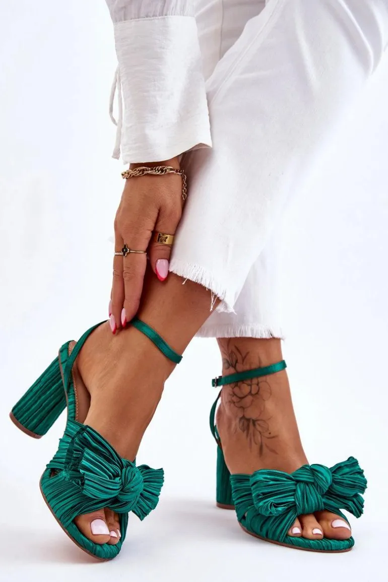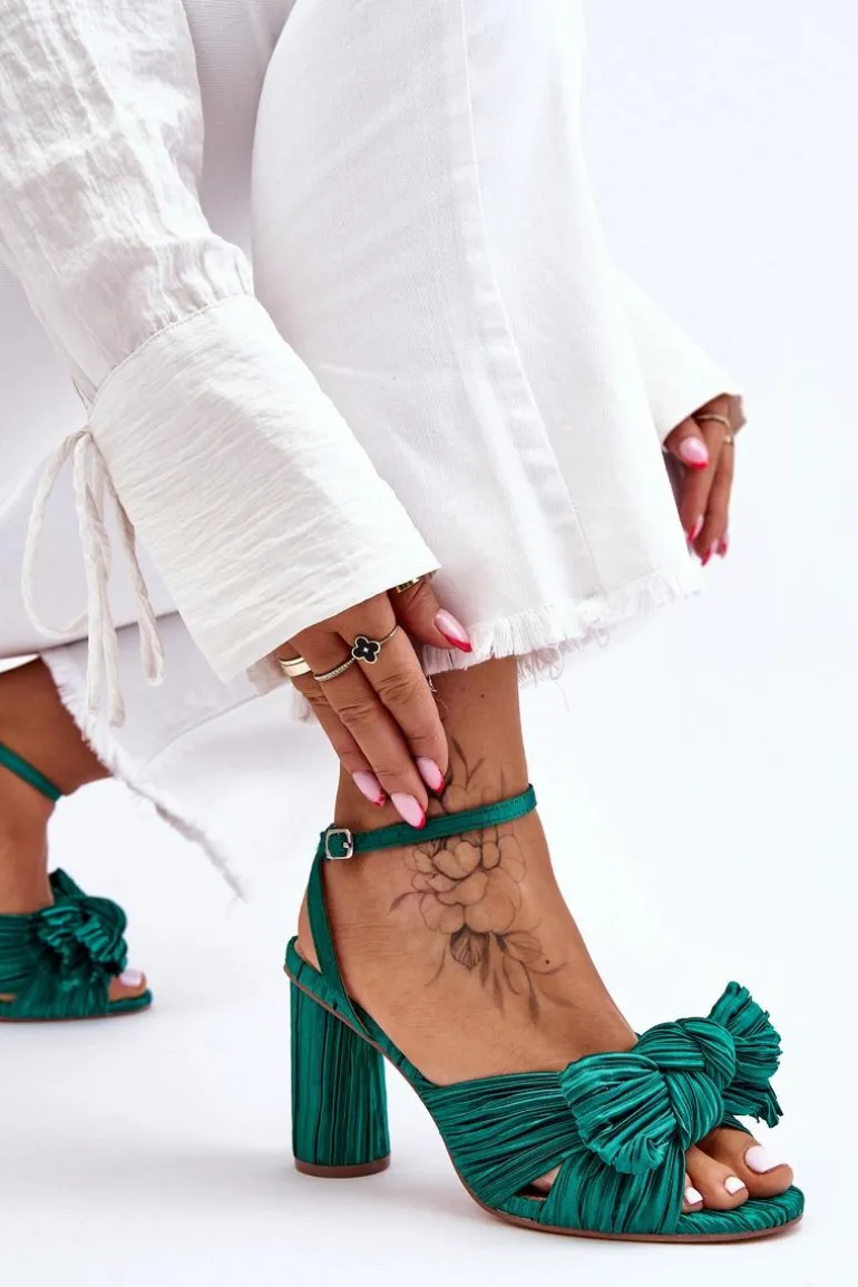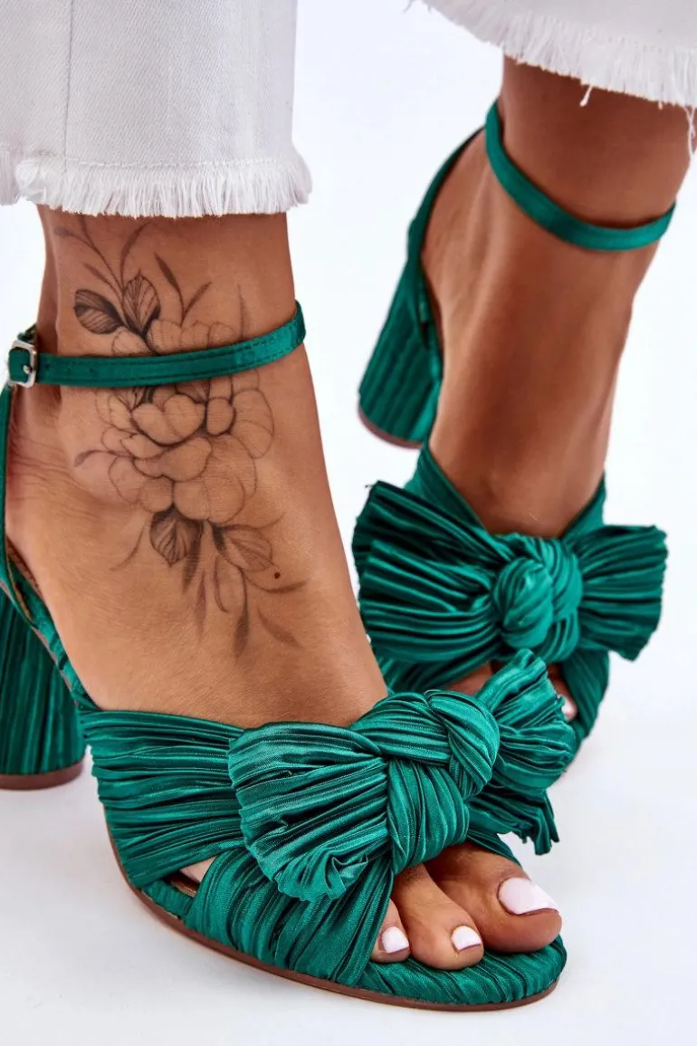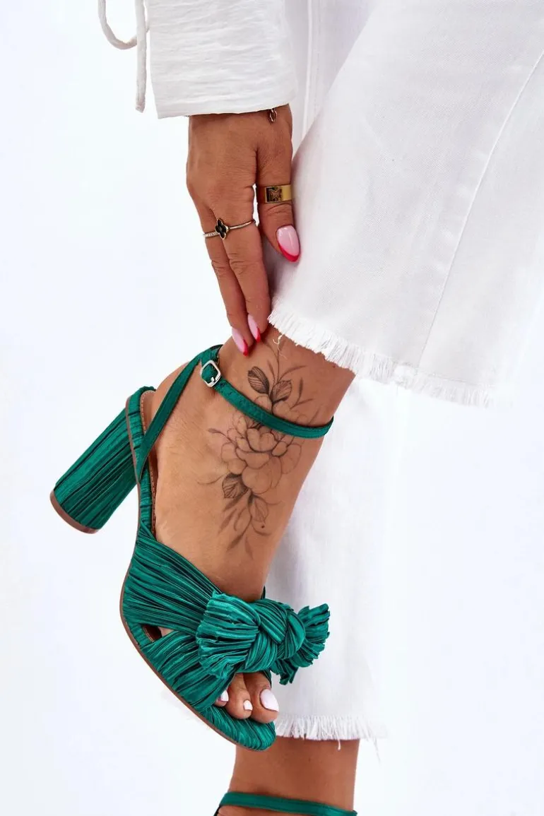 Modne Sandały Z Kokardą Na Obcasie Zielone Callum