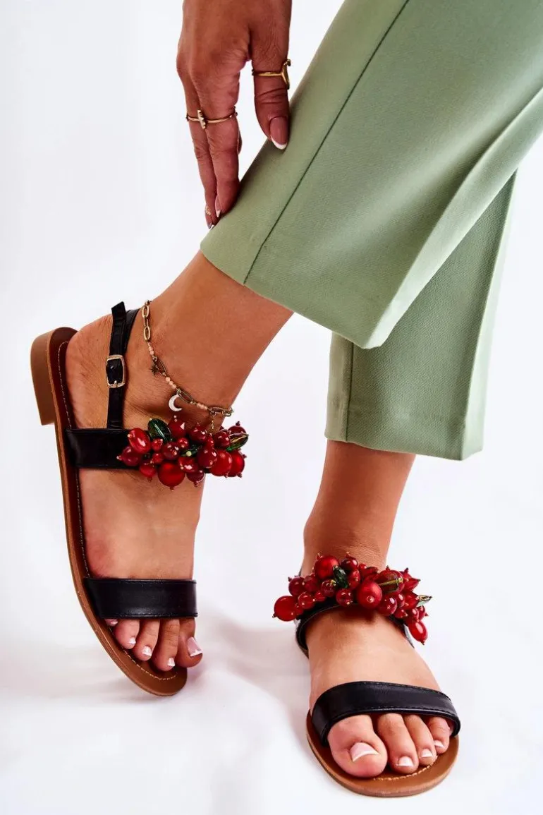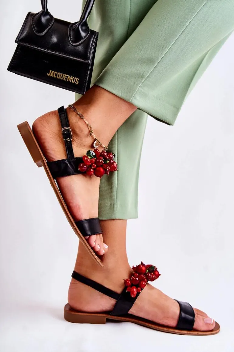 Damskie sandały zostały wykonane z eko skóry. Posiadają piękne koraliki o różnej wielkości. Model zapinany na regulowany pasek ze sprzączką. Wkładka została wykonana z tworzywa sztucznego. Buty zostały osadzone na płaskim obcasie z antypoślizgową podeszwą. Model, który świetnie sprawdzi się w upalne dni. Koniecznie powinnaś je mieć! Przy wyborze rozmiaru prosimy kierować się tabelą rozmiarów.
