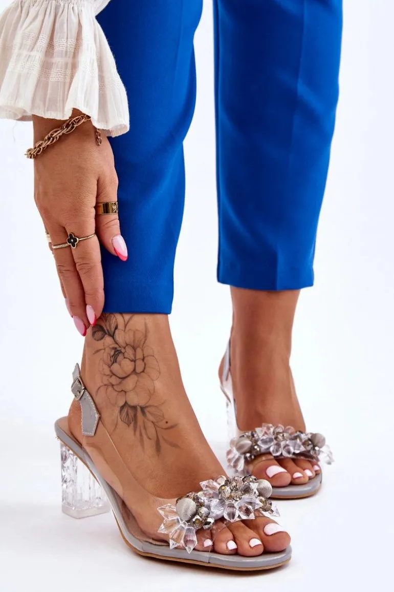 Modne Sandały Z Koralikami Szare Terrance