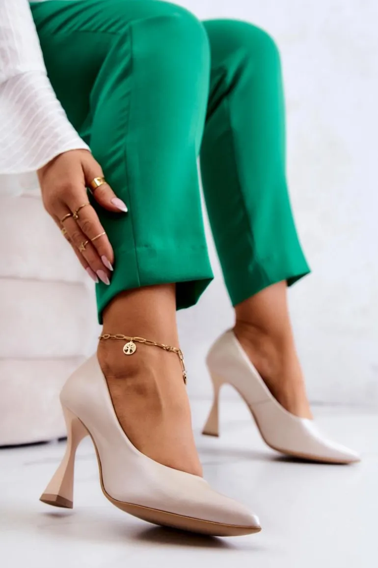 Modne Skórzane Czółenka Lewski Shoes 3181 Beżowe