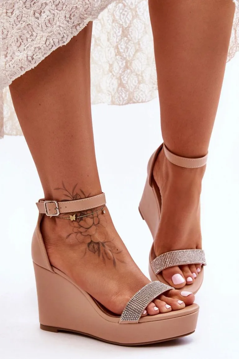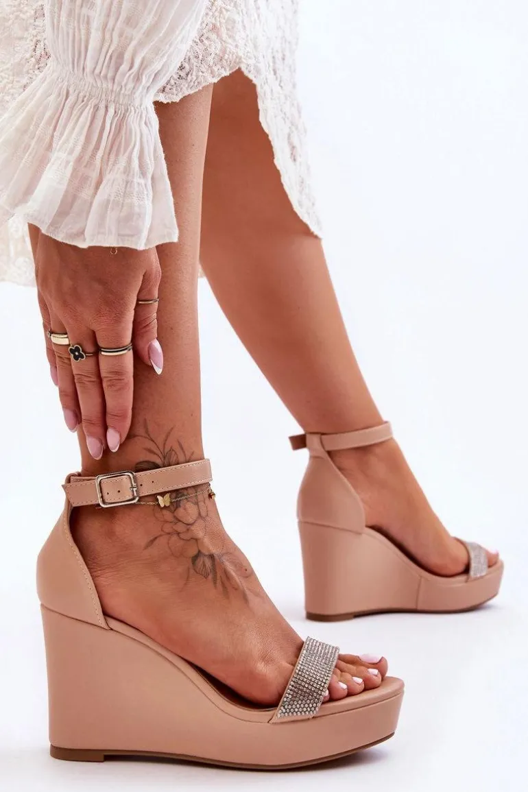 Modne Skórzane Sandały Na Koturnie Nude Arwen