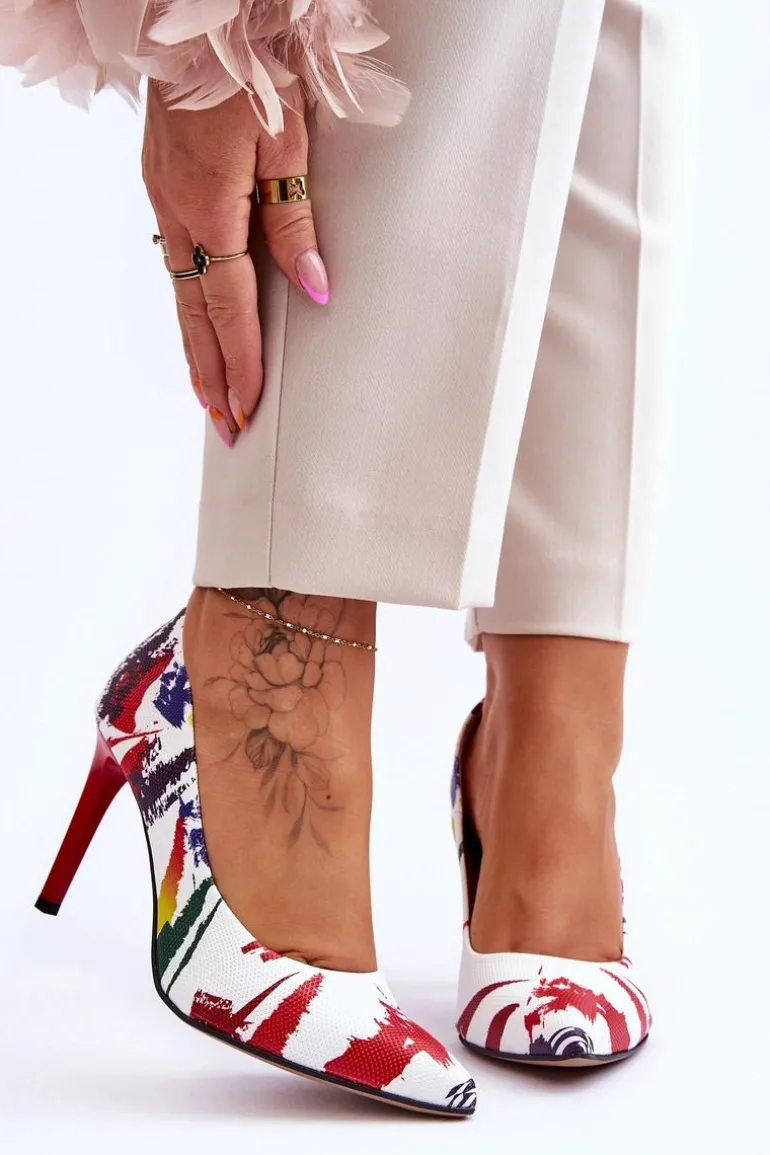 Modne Skórzane Szpilki Lewski Shoes 2659 Biało-Czerwone