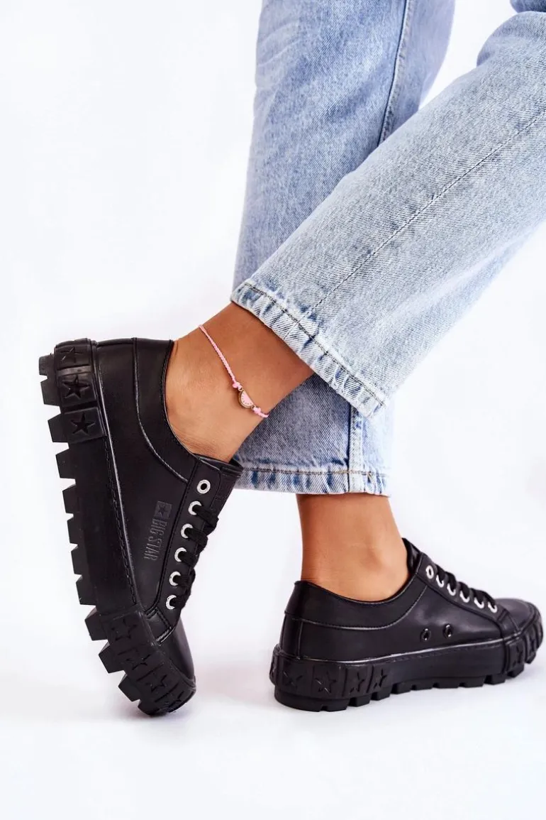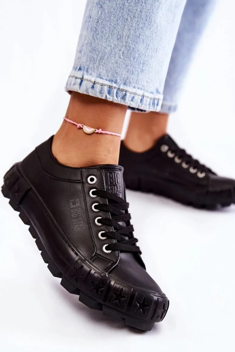 Modne Skórzane Trampki Big Star KK274143 Czarne