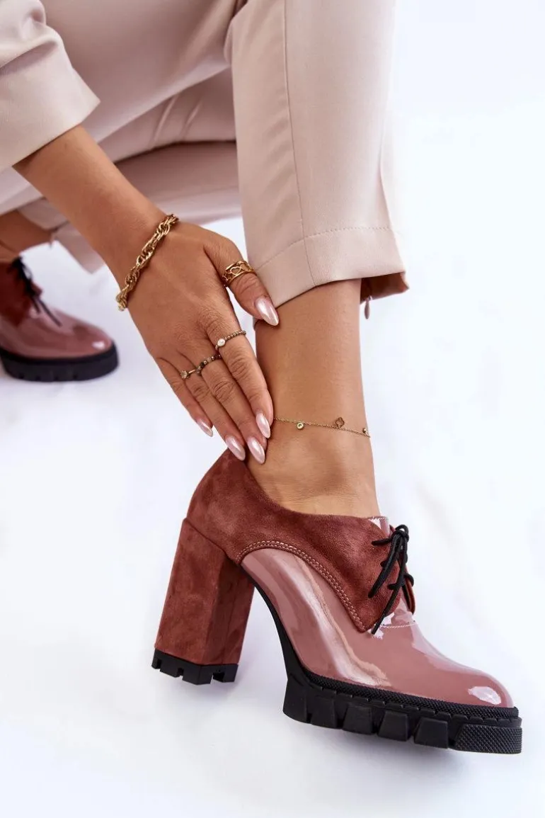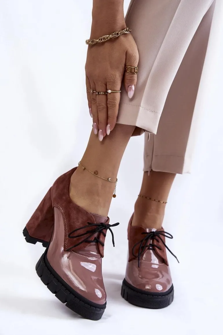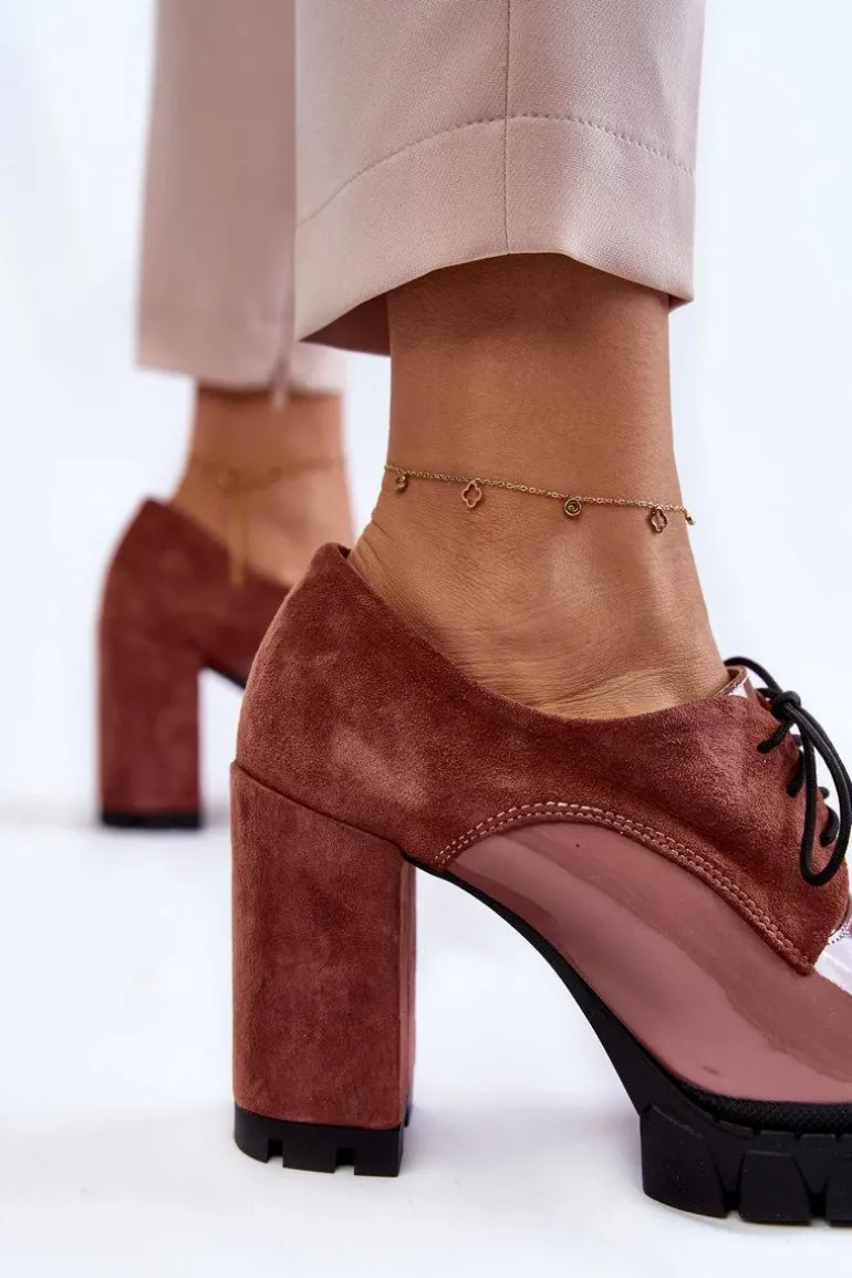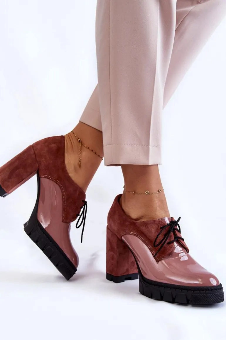 Modne Zamszowo-Lakierowane Botki Na Platformie Różowe Carisa