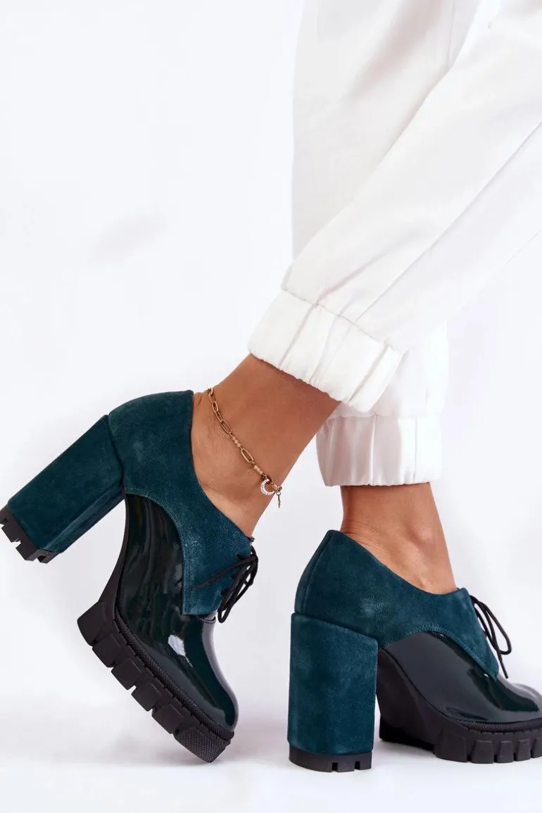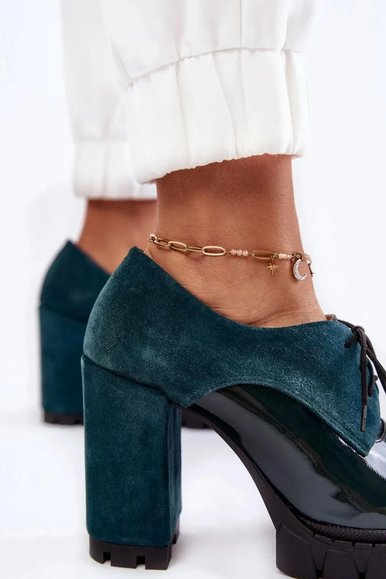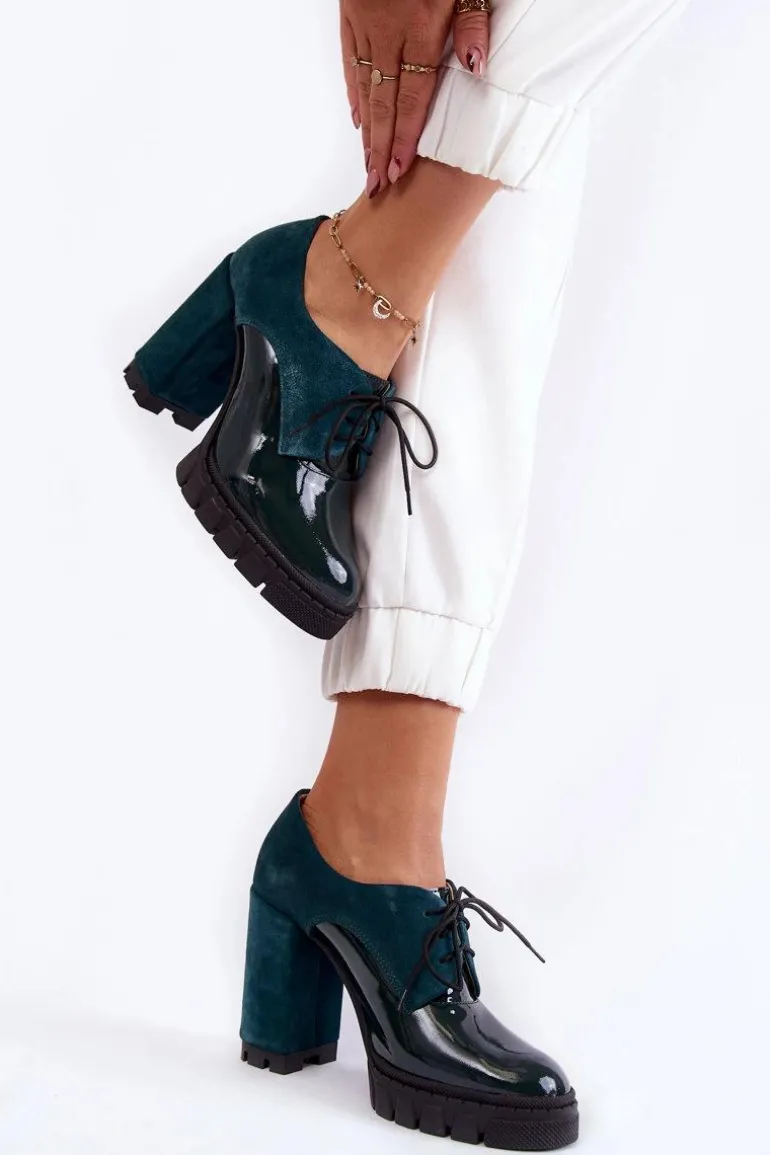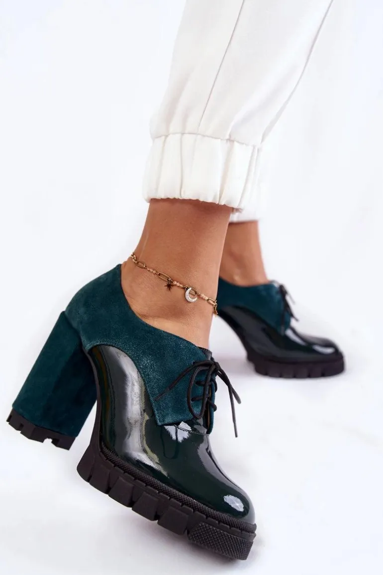 Piękne botki damskie zostały wykonane z najwyższej jakości naturalnych skór z dbałością o szczegóły. Model ten posiada klasyczne sznurowanie. Zapiętek w tych botkach jest usztywniany. Osadzono je na obcasie w postaci słupka oraz platformie ze żłobieniami. Miękka wkładka wykonana z naturalnej skóry zapewni komfort podczas użytkowania. Ten model powinien znaleźć się w Twojej szafie! Przy wyborze rozmiaru prosimy sugerować się tabelą rozmiarów.