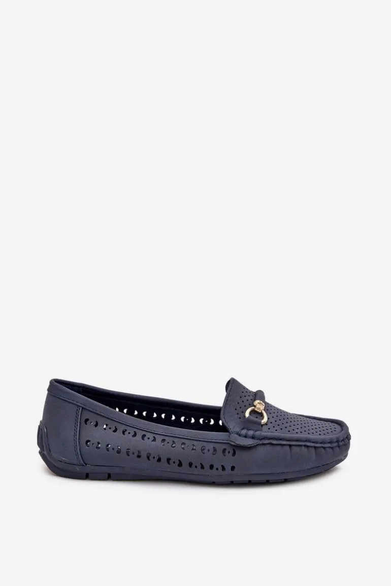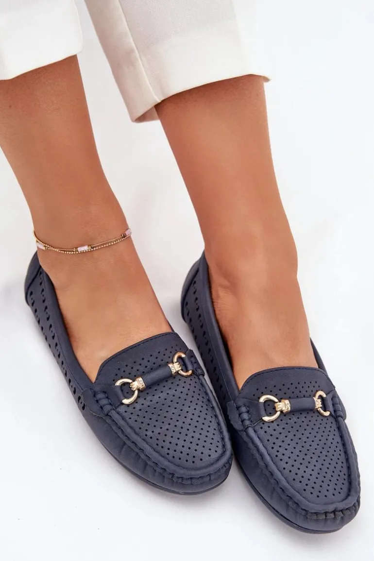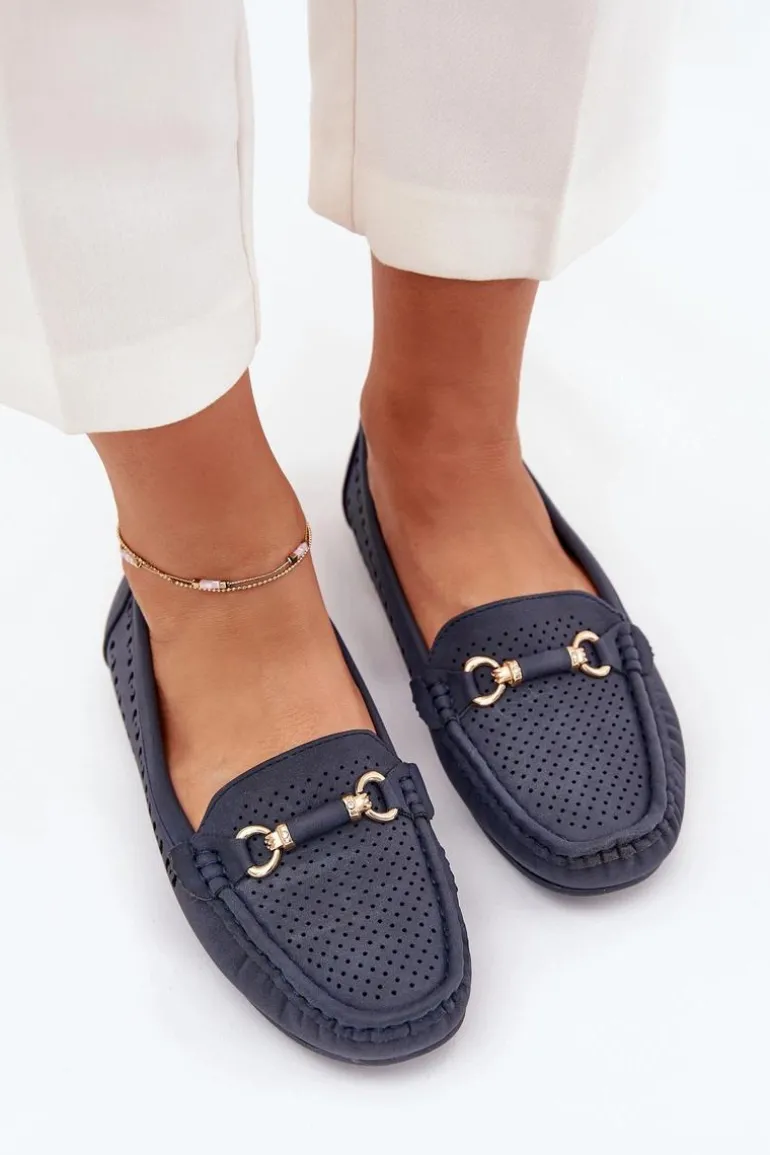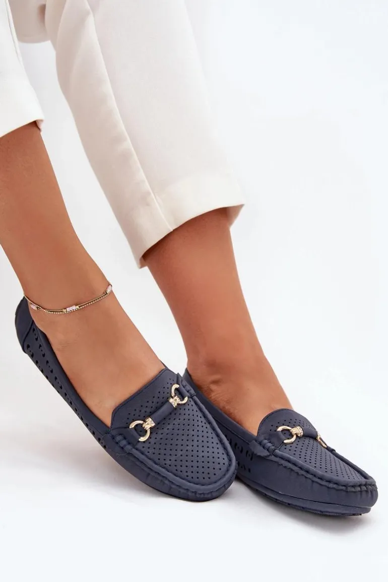 Damskie ażurowe mokasyny wykonane z eko skóry. Złota ozdoba z przodu nadaje im unikalnego charakteru. Miękka wkładka zapewni wygodę podczas użytkowania. Doskonałe na wiele różnych okazji, te mokasyny sprawią, że Twoja stylizacja będzie wyjątkowa i stylowa. Przy wyborze rozmiaru prosimy sugerować się tabelą rozmiarów.