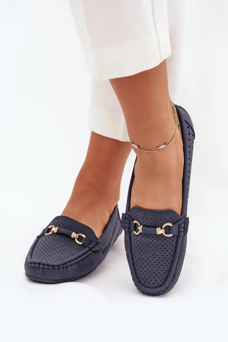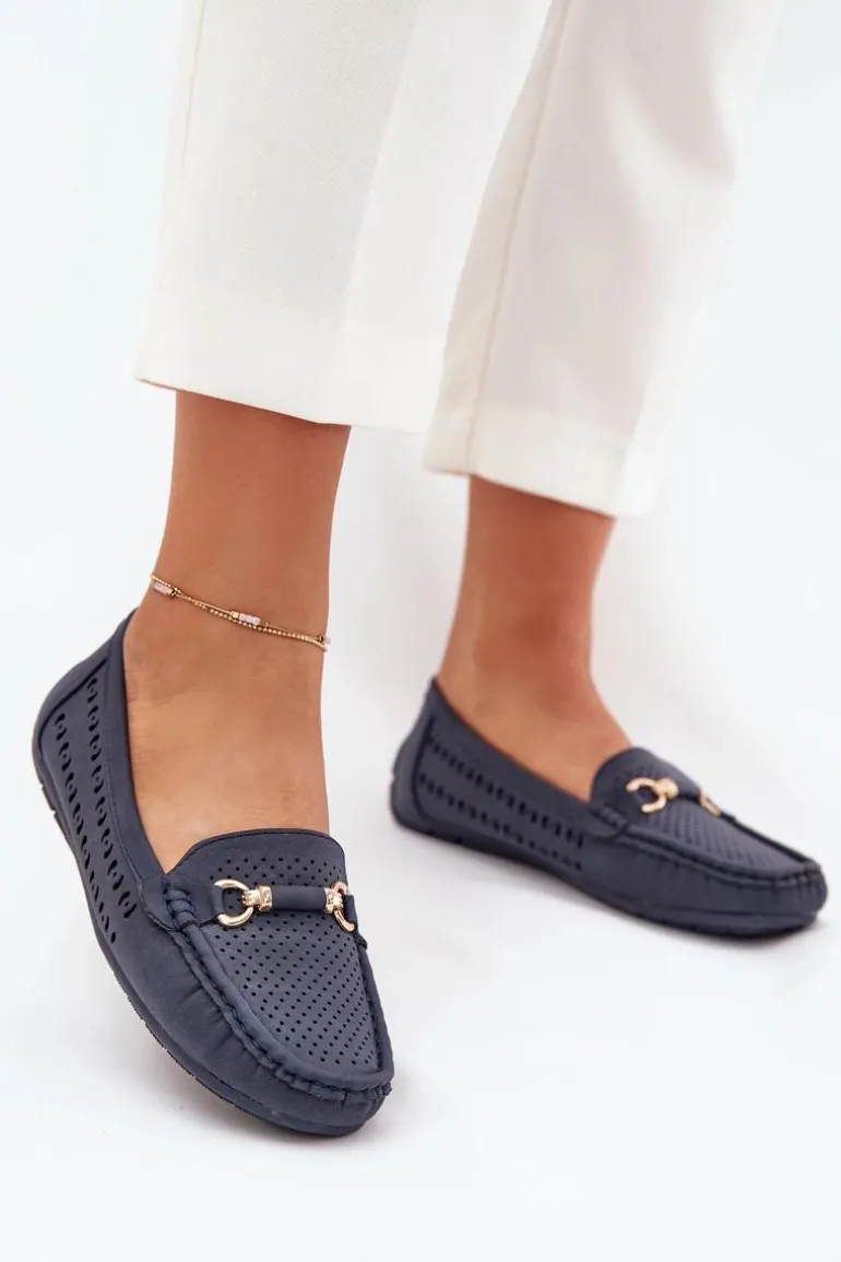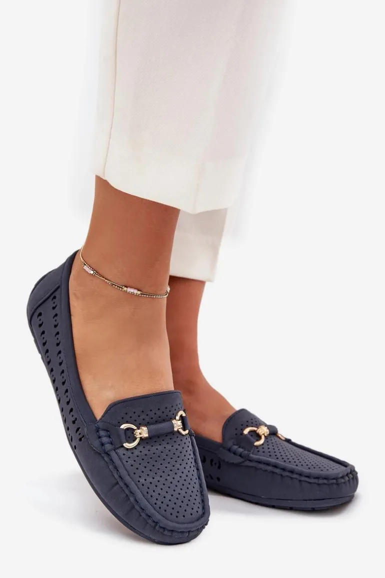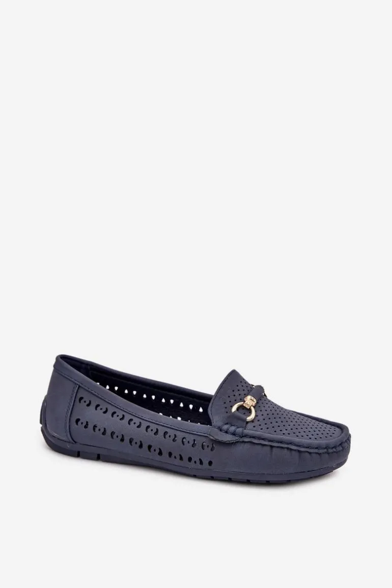 Damskie ażurowe mokasyny wykonane z eko skóry. Złota ozdoba z przodu nadaje im unikalnego charakteru. Miękka wkładka zapewni wygodę podczas użytkowania. Doskonałe na wiele różnych okazji, te mokasyny sprawią, że Twoja stylizacja będzie wyjątkowa i stylowa. Przy wyborze rozmiaru prosimy sugerować się tabelą rozmiarów.