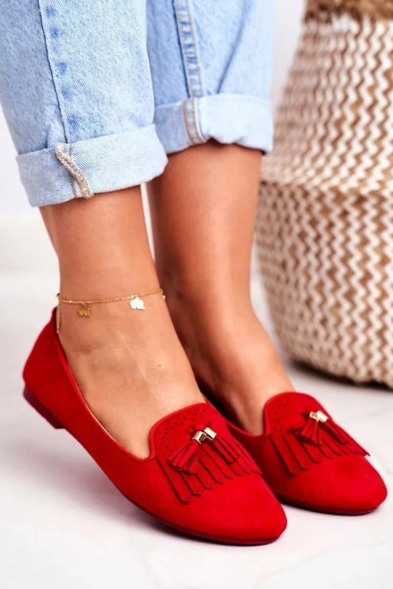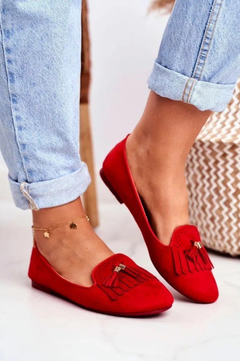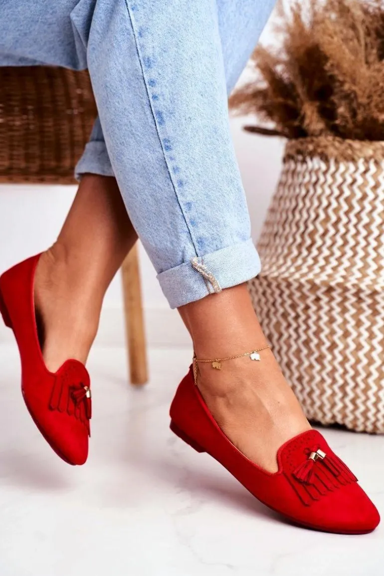 Mokasyny Damskie Czerwone Lordsy Frędzle Therese