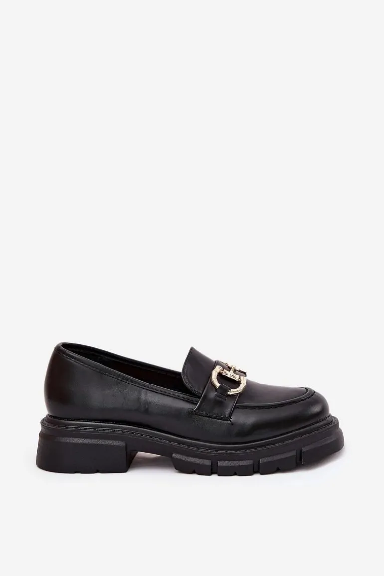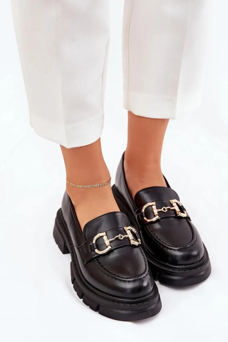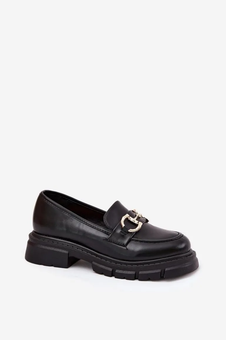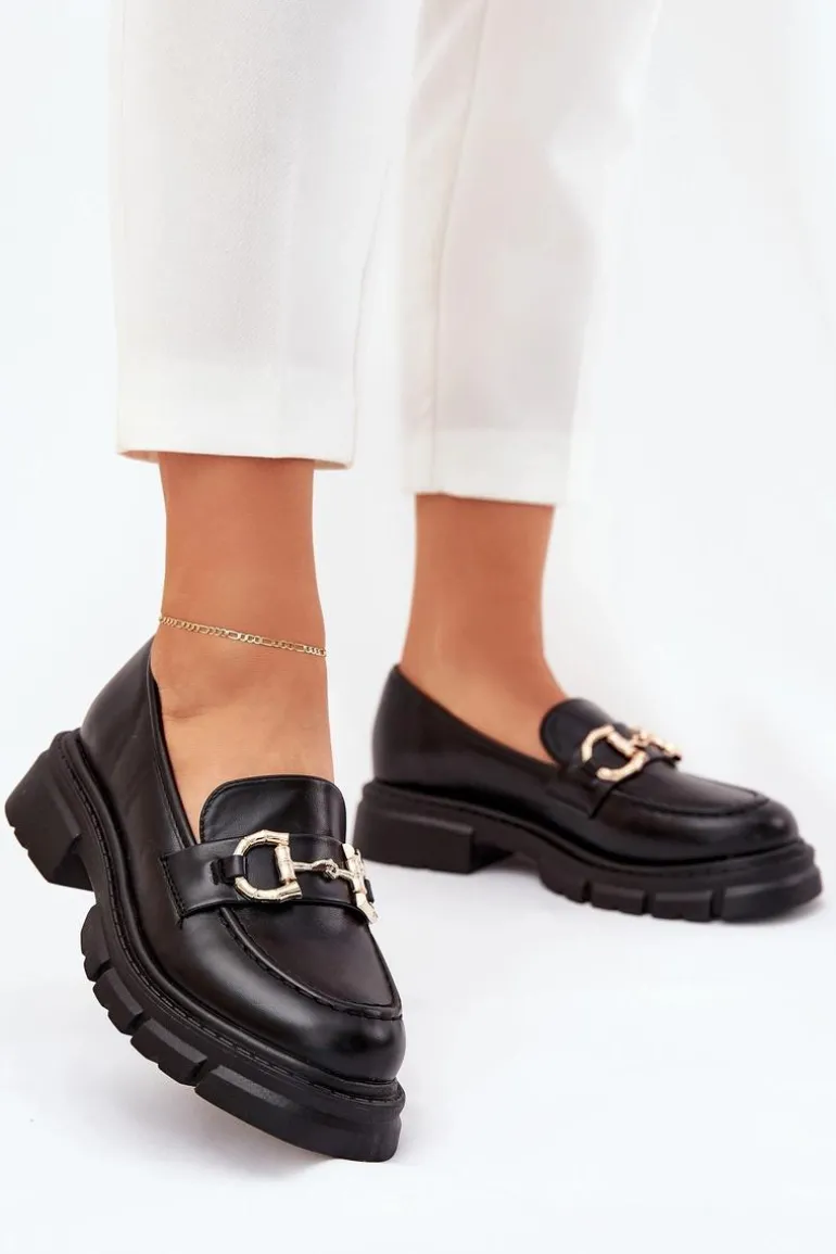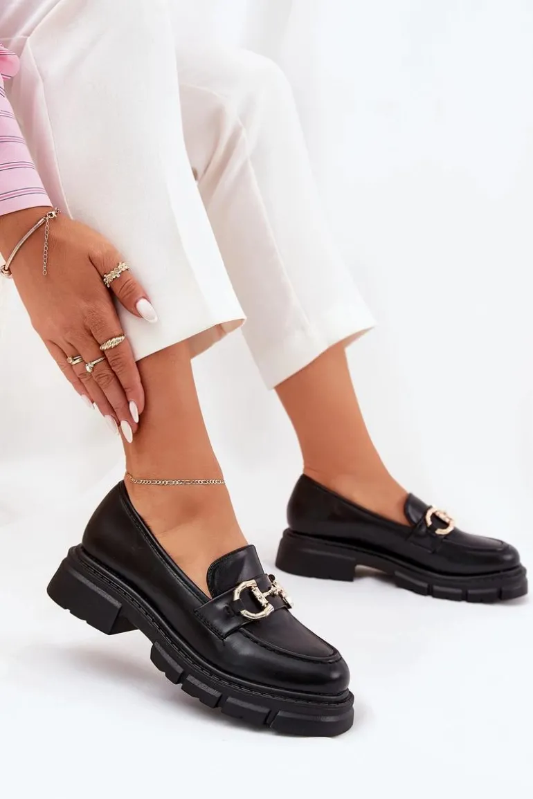 Stylowe mokasyny damskie wykonane z eko skóry. Noski zaokrąglone zapewniają wygodę przez cały dzień, a z przodu butów znajduje się ozdobny złoty detal, który dodaje im wyjątkowego charakteru. Osadzone na platformie i płaskim obcasie, te mokasyny oferują stabilność i lekkość. Idealne do codziennych stylizacji. Przy wyborze rozmiaru prosimy sugerować się tabelą rozmiarów.