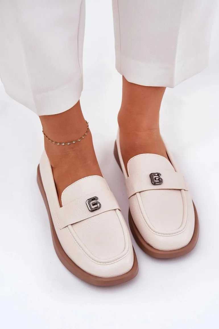 Mokasyny Damskie Eleganckie Z Ozdobnym Małym Detalem Vinceza 62208 Beżowe