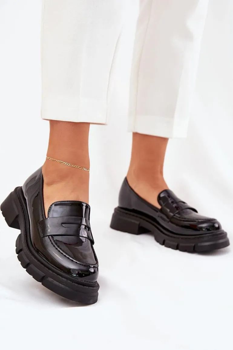 Mokasyny wykonane z eko skóry, łączące klasyczny styl z nowoczesnym wyglądem. Osadzone na platformie i płaskim obcasie, zapewniają wygodę i stabilność. Model posiada zaokrąglone noski i paseczek z wycięciem, który nadaje im wyjątkowego charakteru. Idealne do codziennych stylizacji! Przy wyborze rozmiaru prosimy sugerować się tabelą rozmiarów.