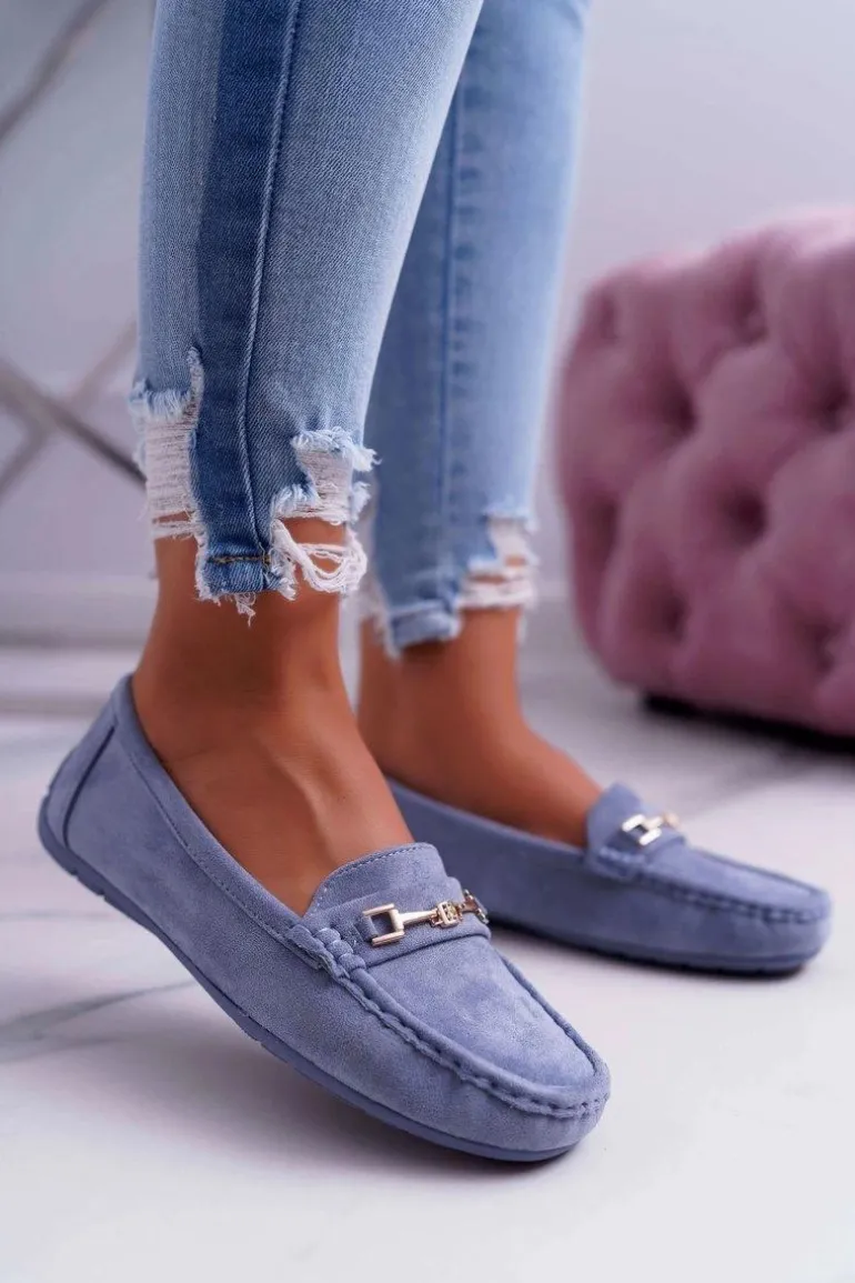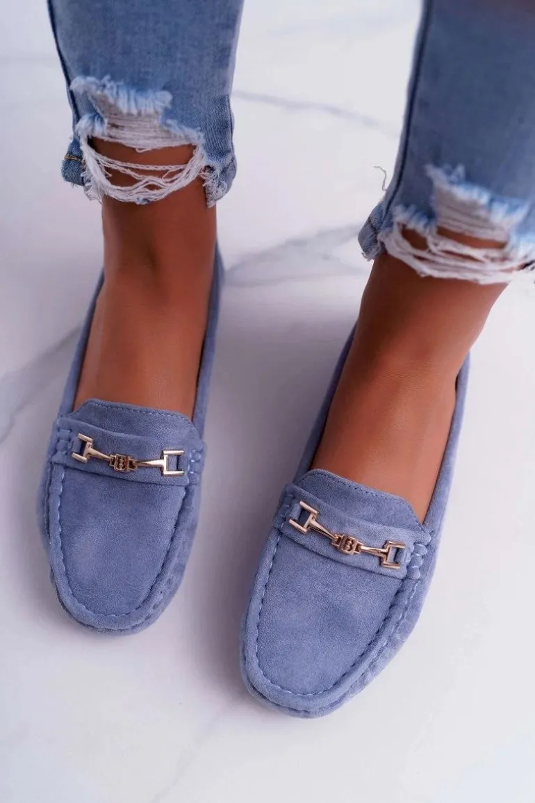 Mokasyny Damskie Lekkie Eko-zamsz Niebieskie Think