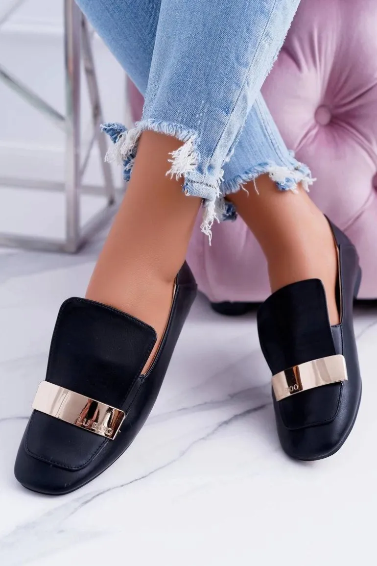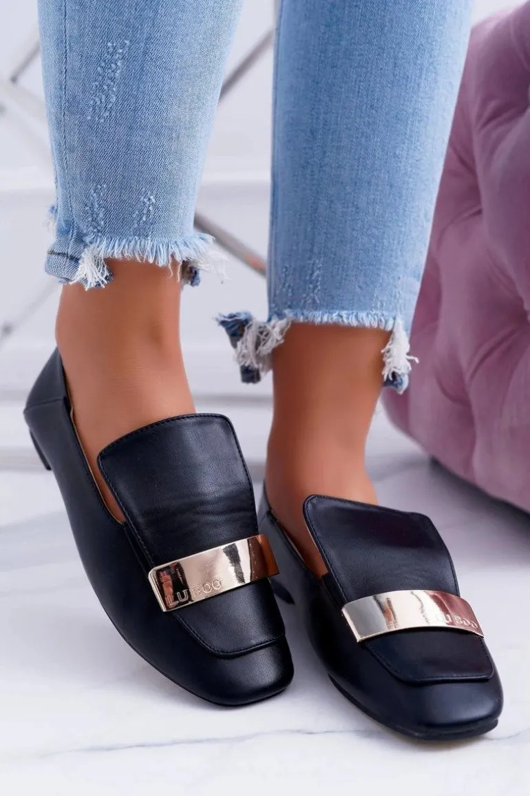 Mokasyny Damskie Lu Boo Czarne Licowe Z Blaszką Harlem