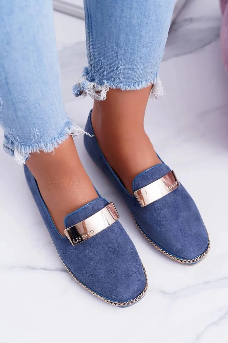 Mokasyny Damskie Lu Boo Granatowe Łańcuch Zamsz Panama