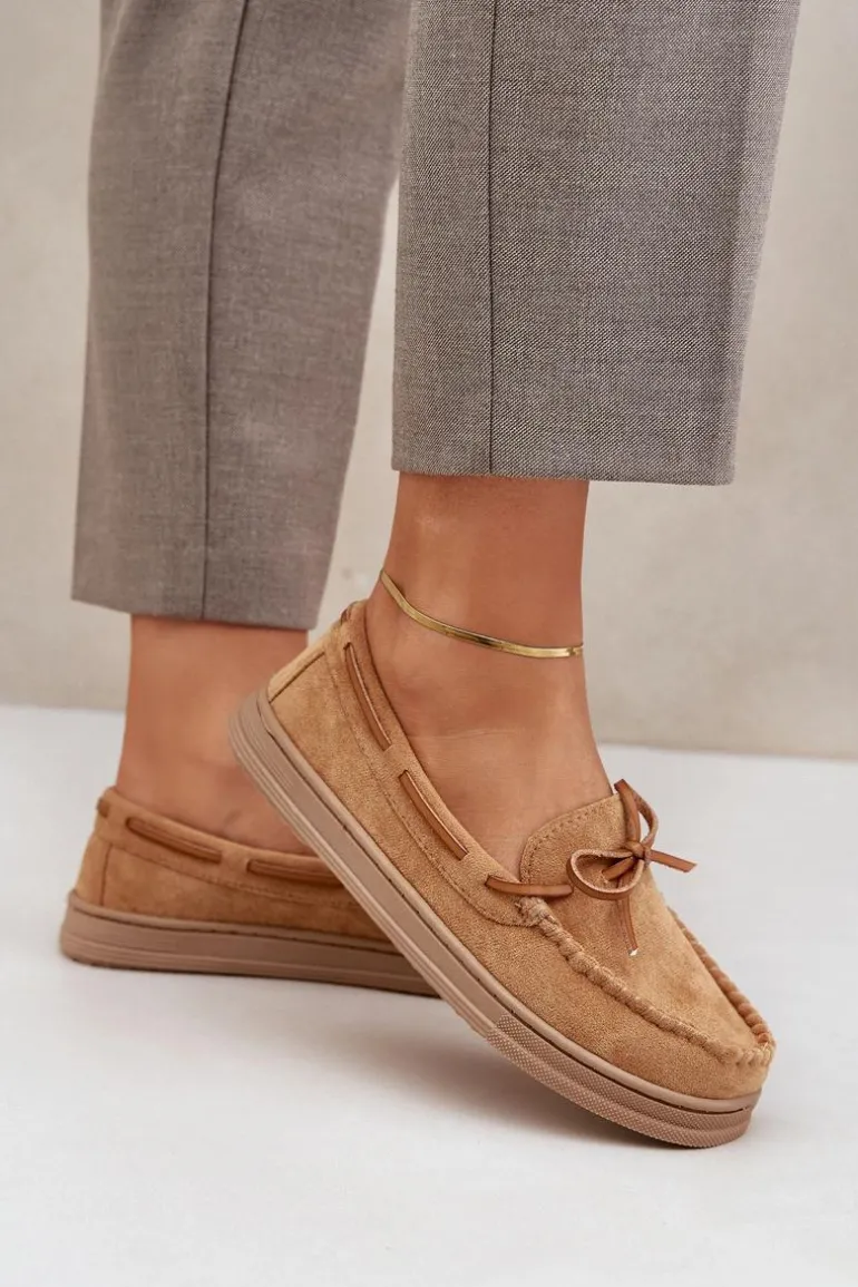 Mokasyny damskie z eko zamszu to klasyczna i wygodna propozycja na co dzień. Osadzone na płaskiej podeszwie, zapewniają komfort noszenia przez cały dzień. Z przodu ozdobione subtelną kokardką, która nadaje im uroku i kobiecego charakteru. Model ten to idealny wybór dla kobiet, które cenią wygodę połączoną z delikatnym akcentem mody. Podczas wyboru rozmiaru prosimy sugerować się tabelą rozmiarów.
