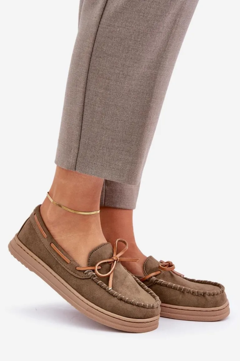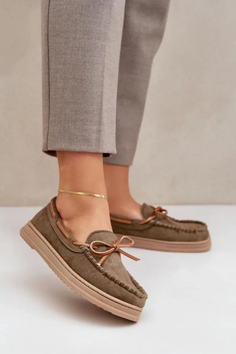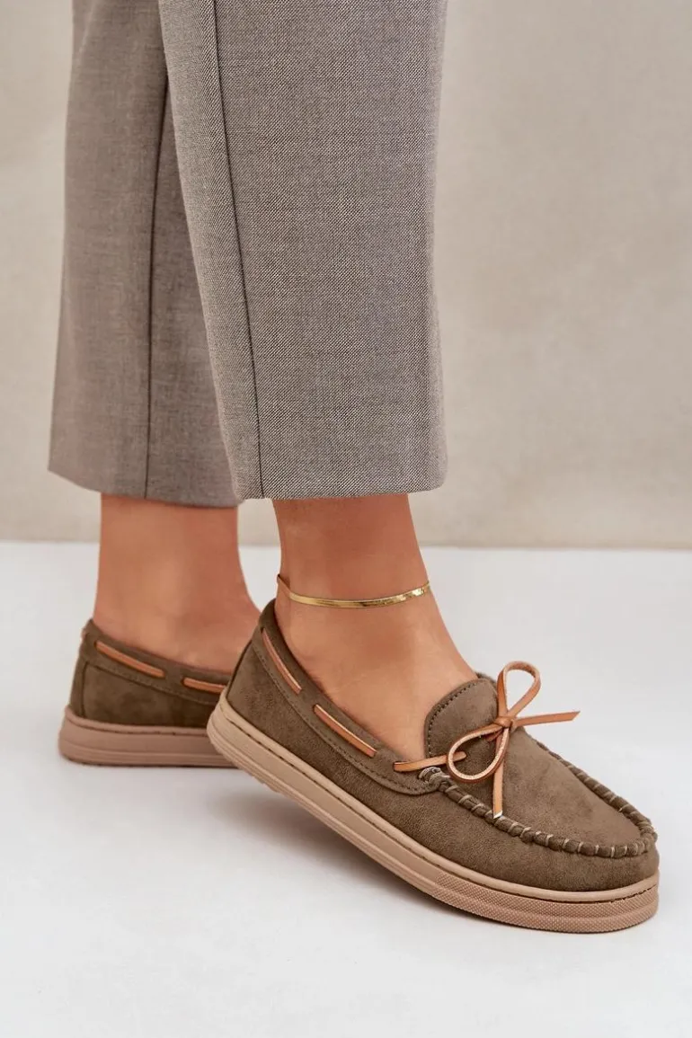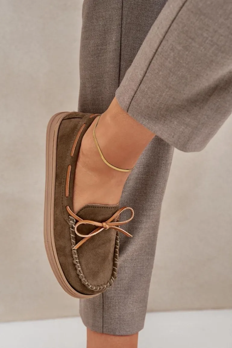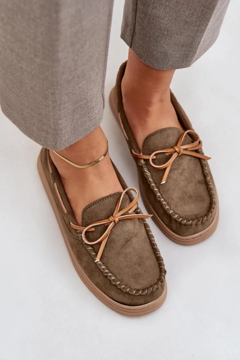 Mokasyny Damskie Na Płaskiej Podeszwie Ciemnozielone Timannie