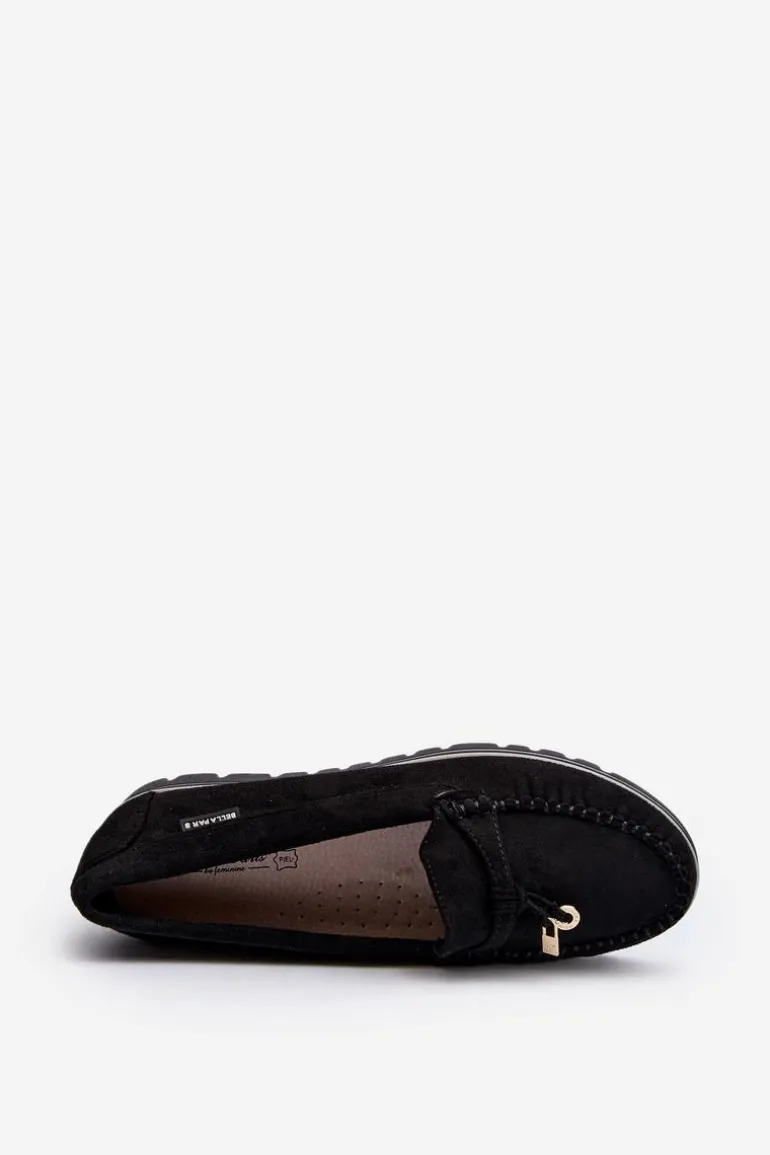 Mokasyny damskie wykonane z eko zamszu. Osadzone na platformie. Noski zaokrąglone. Model ten posiada miękką wkładkę ze skóry naturalnej, która zapewni wygodę podczas noszenia. Z przodu małe zawieszki. Klasyczny fason, który dopasujesz do wielu wiosenno-letnich stylizacji! Przy wyborze rozmiaru prosimy sugerować się tabelą rozmiarów.