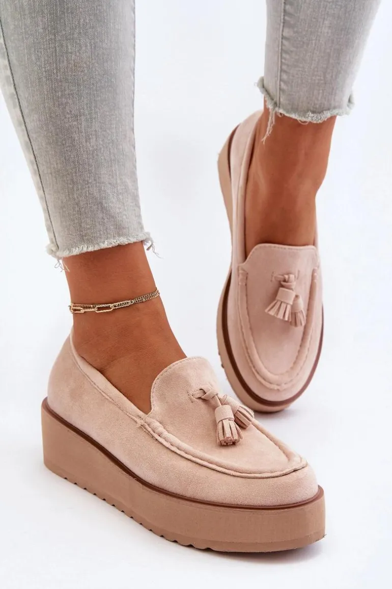 Mokasyny Damskie Na Platformie Z Frędzlami Jasnobeżowe Mialani