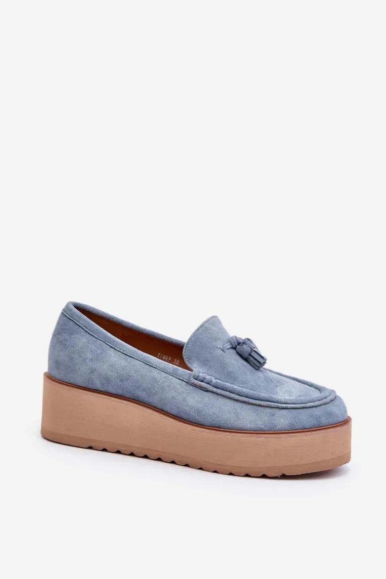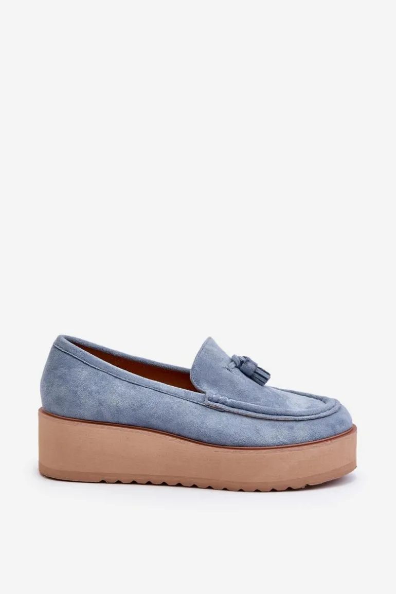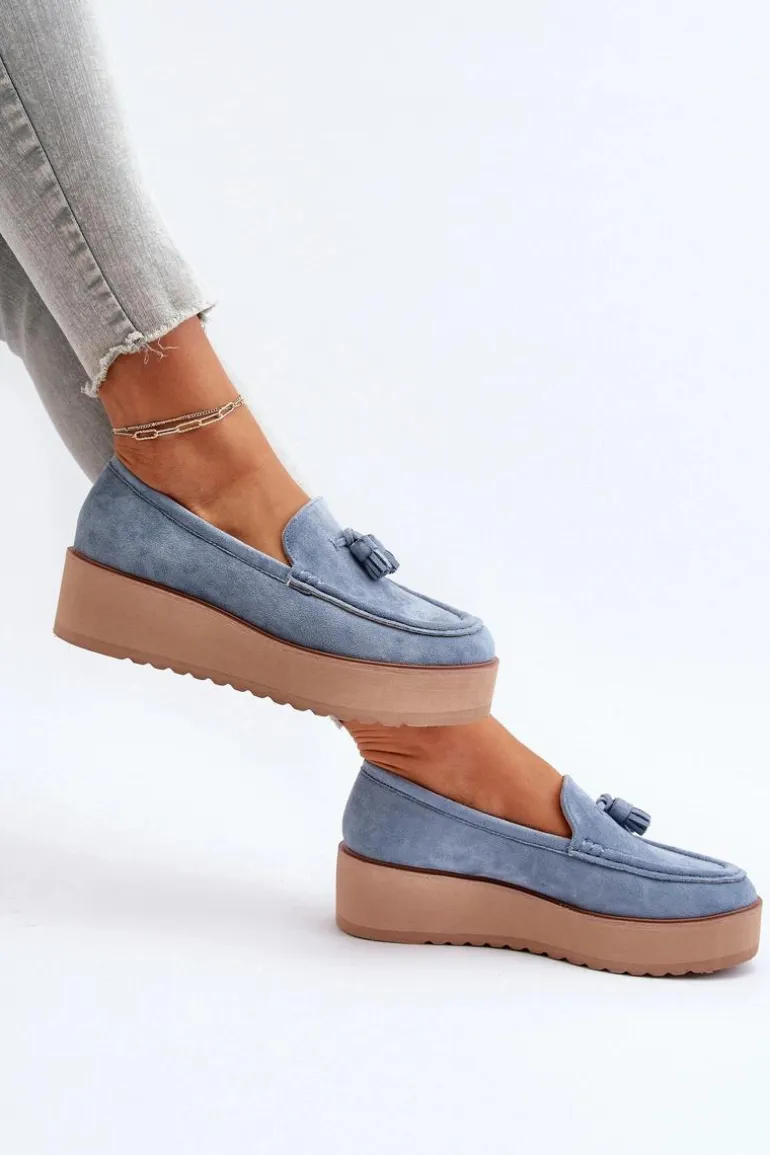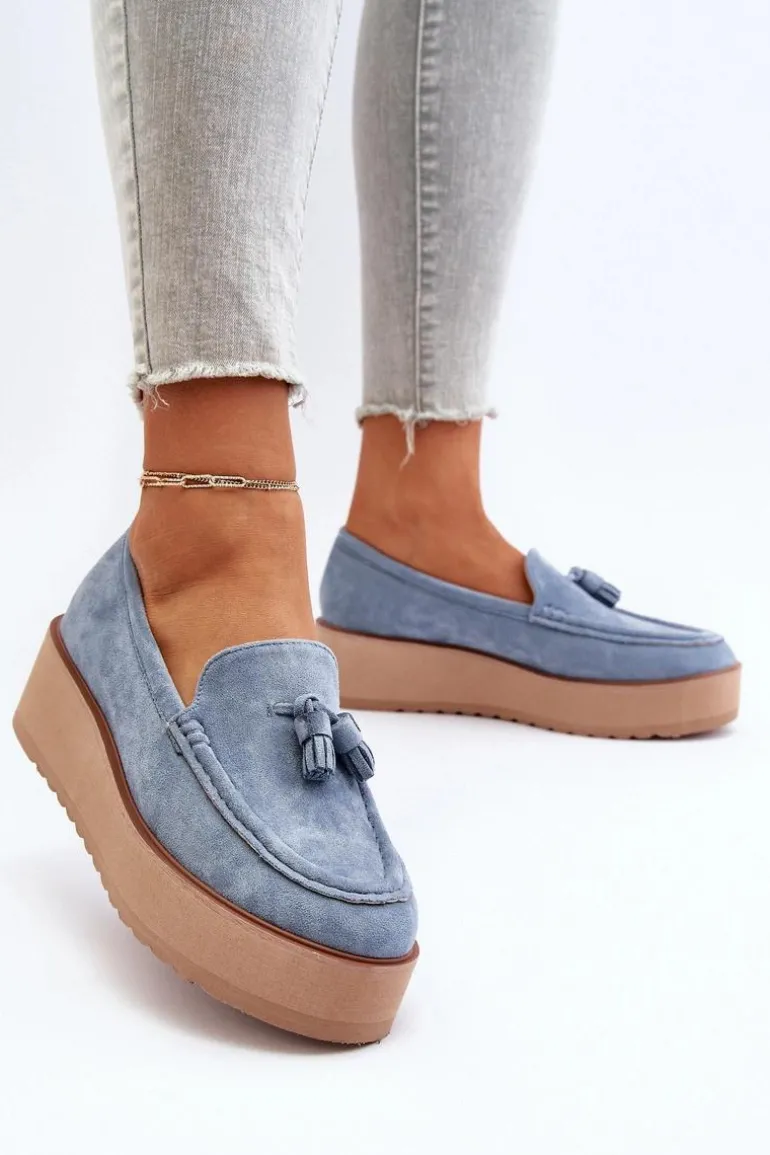 Klasyczne mokasyny damskie osadzone na platformie. Ozdobne frędzle na przodzie nadają im unikalnego stylu. Noski zaokrąglone, lekko usztywniony zapiętek. Idealne zarówno do casualowych, jak i bardziej wyrafinowanych stylizacji, te mokasyny będą doskonałym dodatkiem do Twojej garderoby! Przy wyborze rozmiaru prosimy sugerować się tabelą rozmiarów.