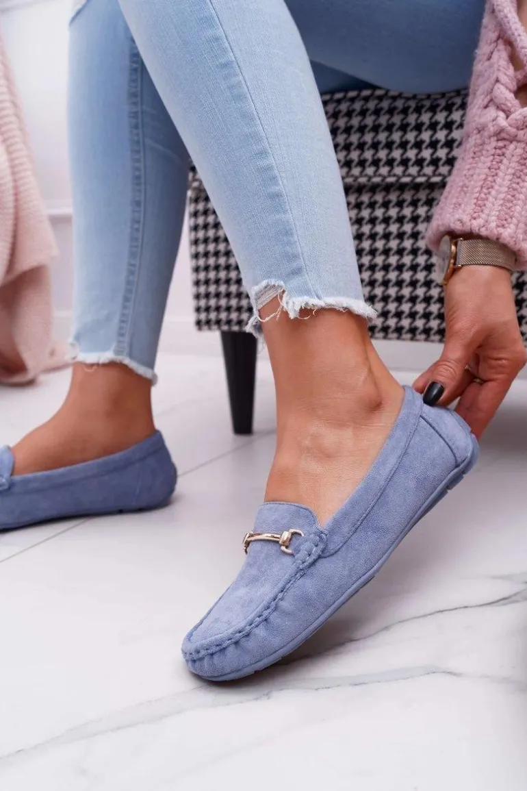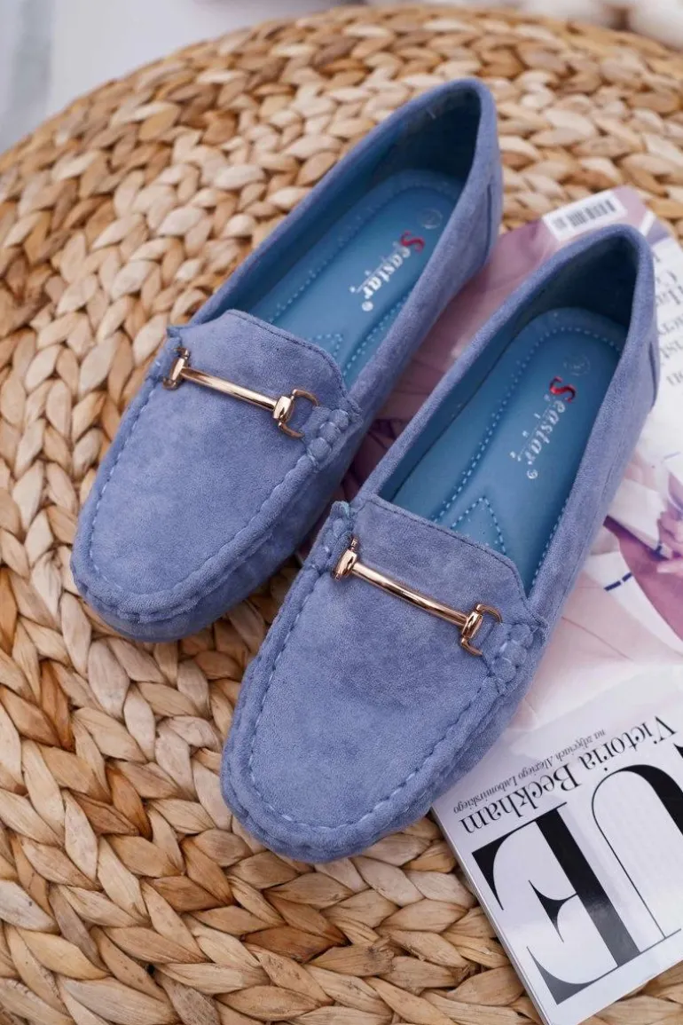 Mokasyny Damskie Niebieskie Zamszowe Sonnero