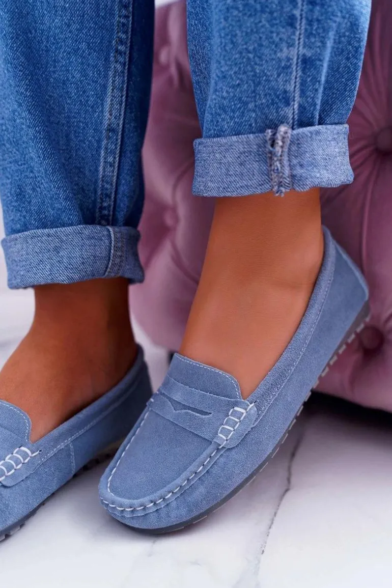 Mokasyny Damskie Skóra Zamszowa Błękitne Tenzion