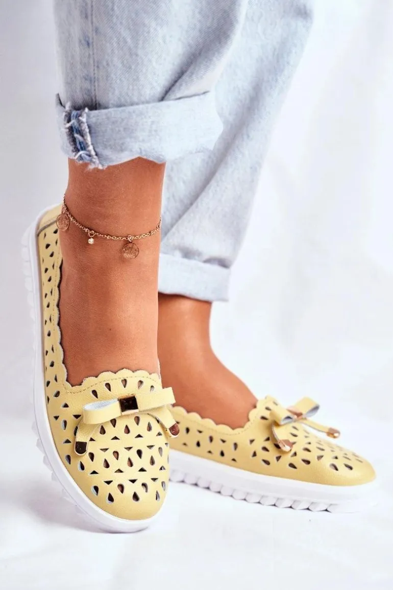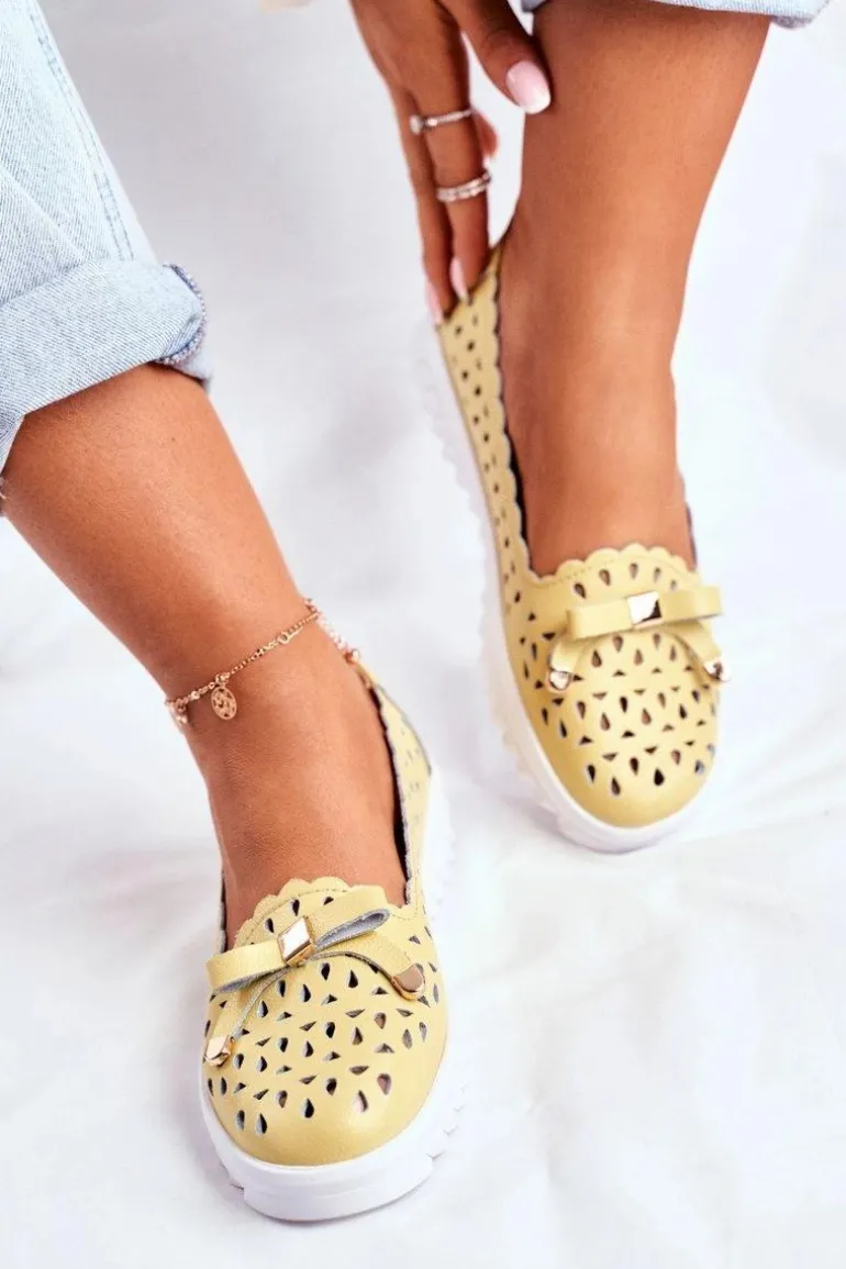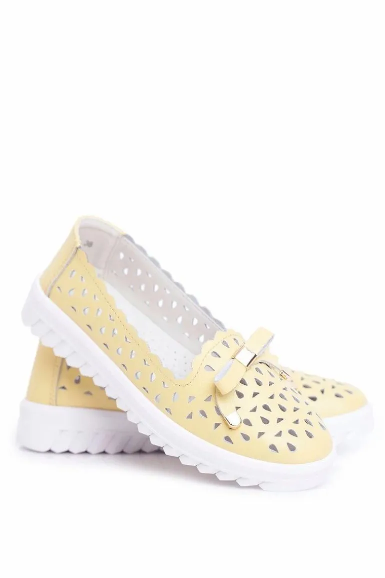 Mokasyny Damskie Skórzane Ażurowe LR71515 Żółte Murrieta