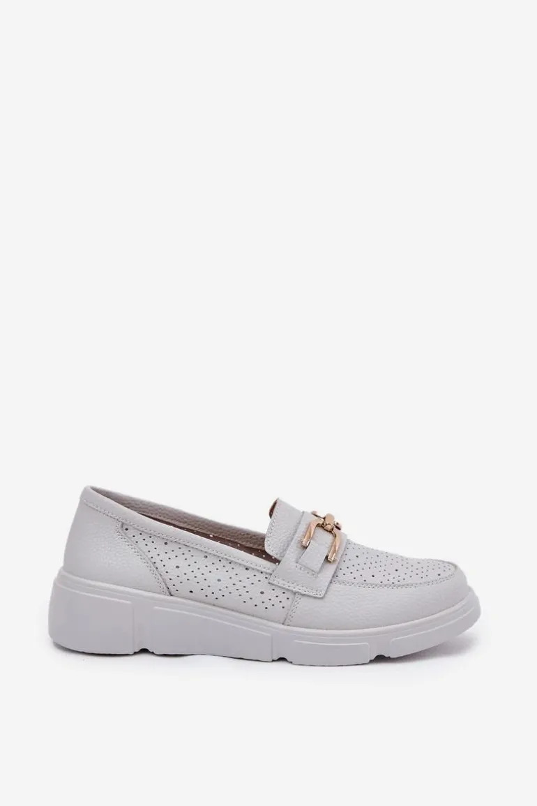 Mokasyny Damskie Skórzane Ze Złotym Detalem Vinceza 88007 Jasnoszare