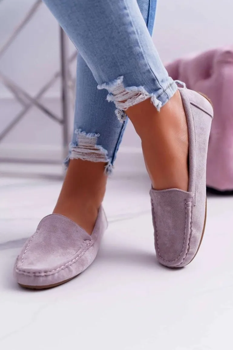 Mokasyny Damskie Wygodne Eko-zamsz Lila Róż Lemma