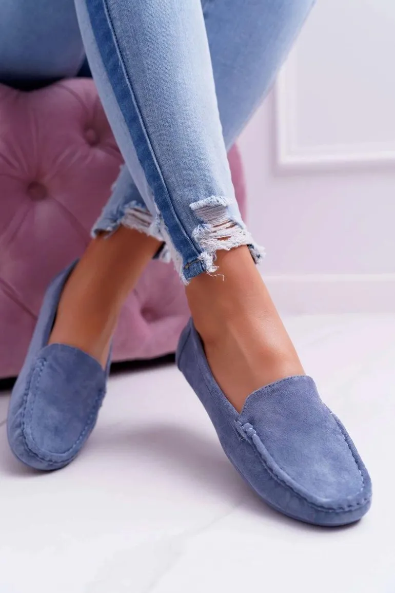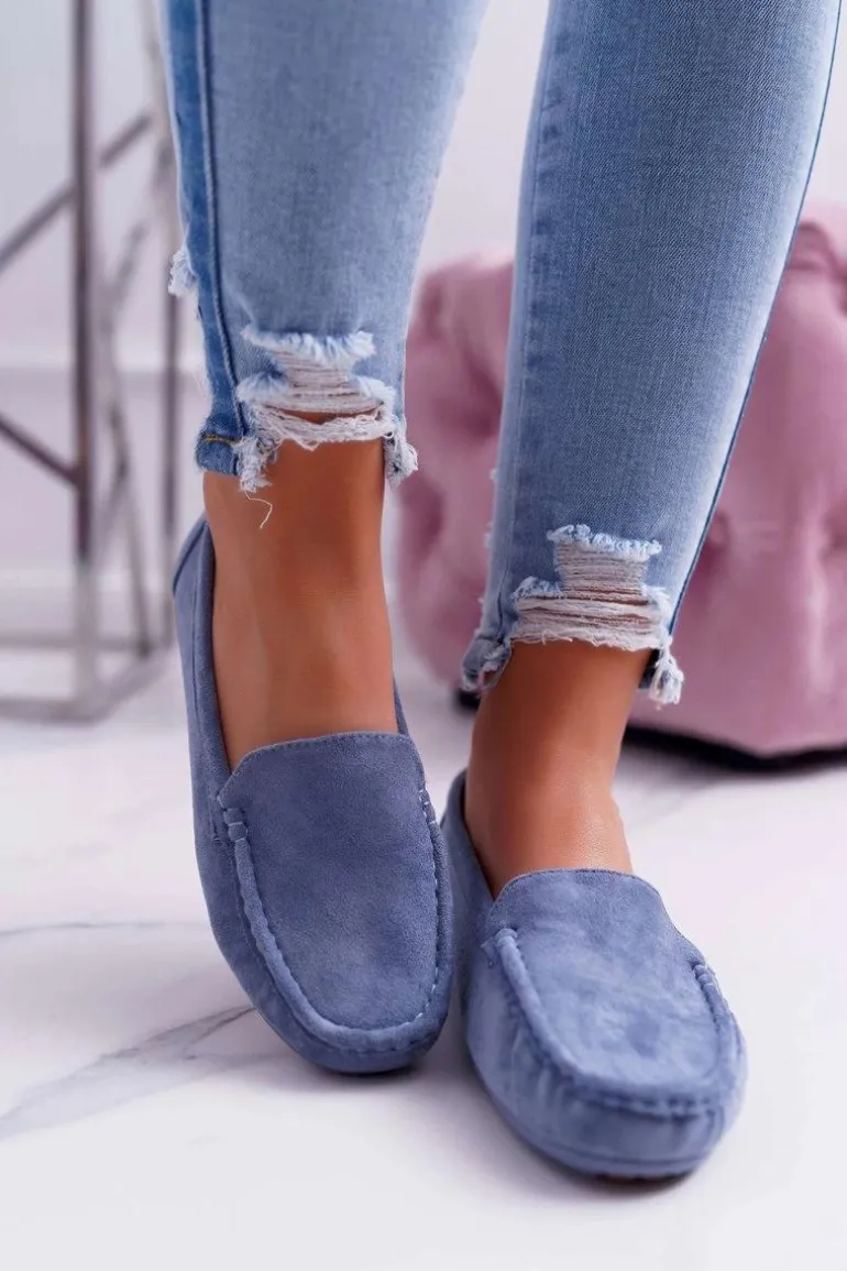 Mokasyny Damskie Wygodne Eko-zamsz Niebieskie Lemma