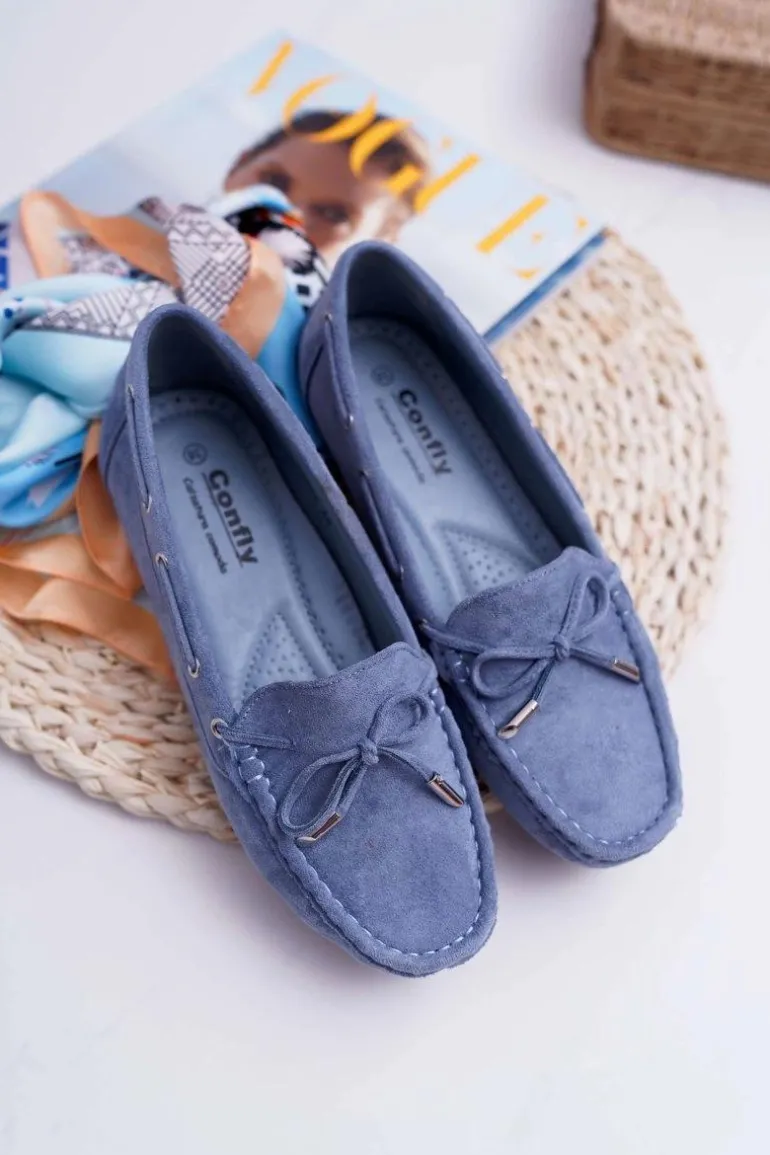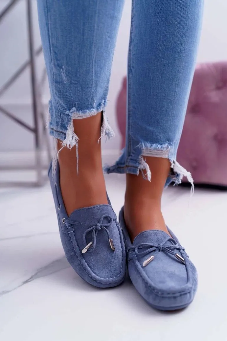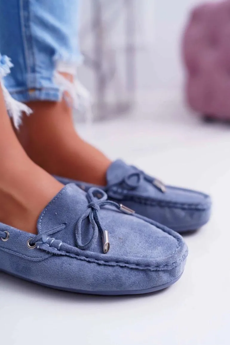Mokasyny Damskie Wygodne Eko-zamsz Niebieskie Memfi