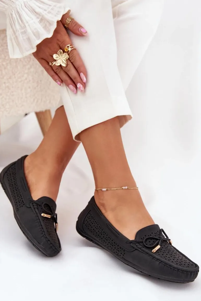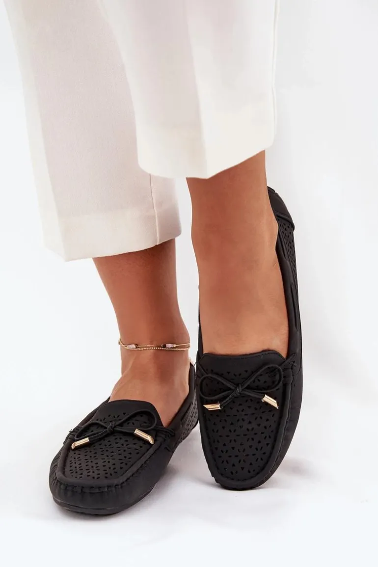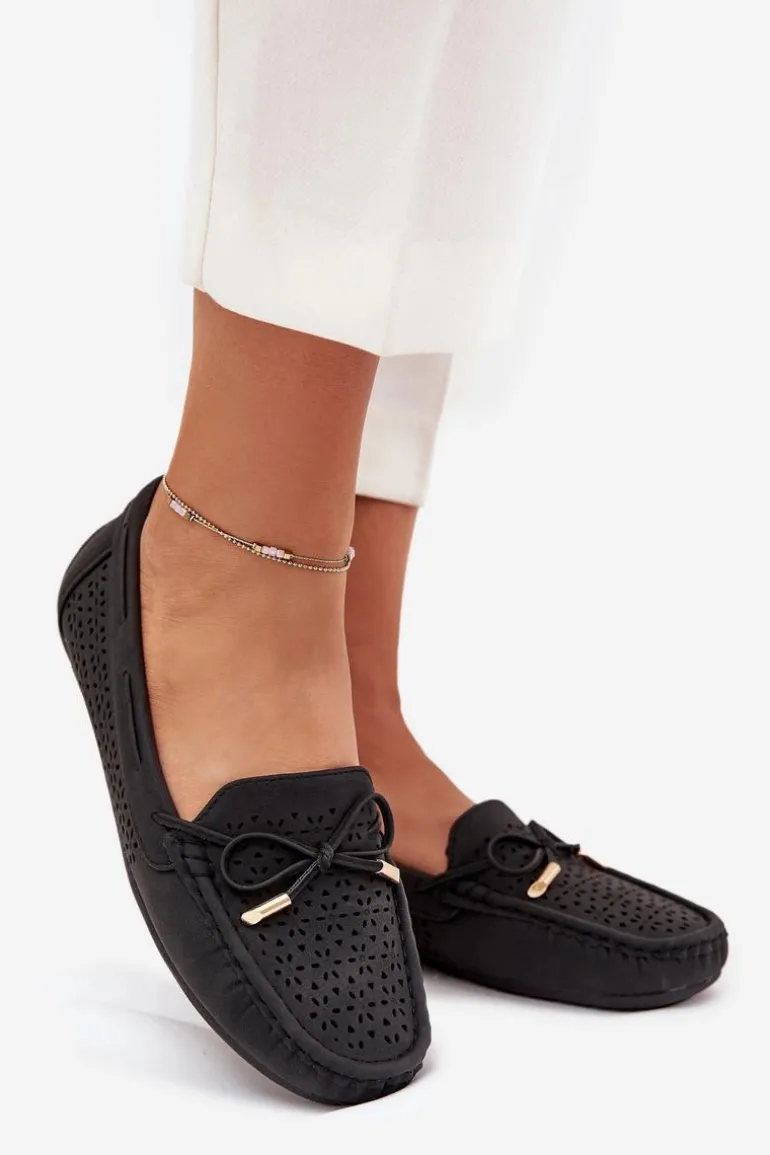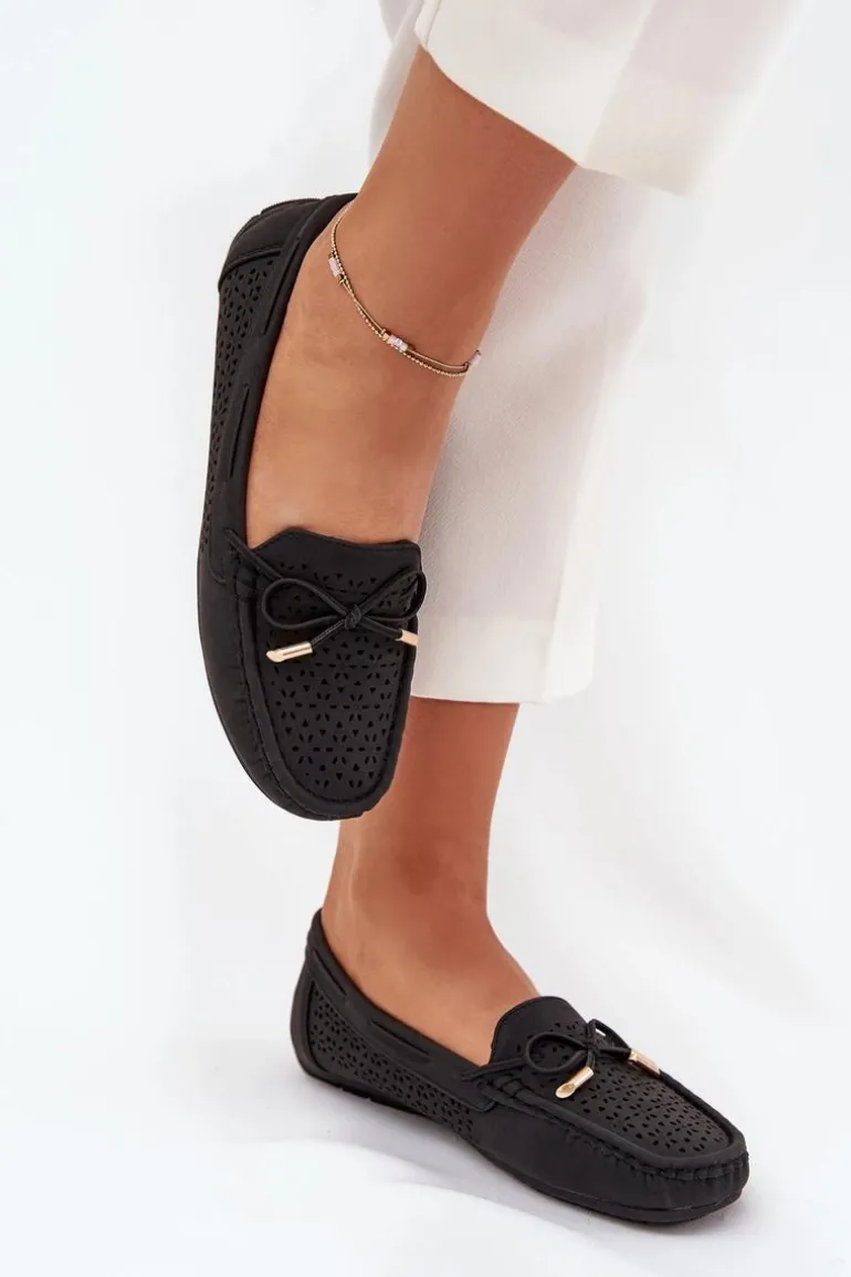 Mokasyny damskie wykonane z eko skóry, ozdobione ażurowym wzorkiem, to doskonała propozycja na wiosnę i lato. Z przodu znajdują się wiązanie w formie kokardki, które dodaje subtelności i uroku. Miękka wkładka zapewnia komfort przez cały dzień, a zaokrąglone noski gwarantują wygodę. Doskonałe do casualowych stylizacji, świetnie komponują się z sukienkami, spódnicami i spodniami, wprowadzając do każdej kreacji lekkość i elegancję. Przy wyborze rozmiaru prosimy sugerować się tabelą rozmiarów.