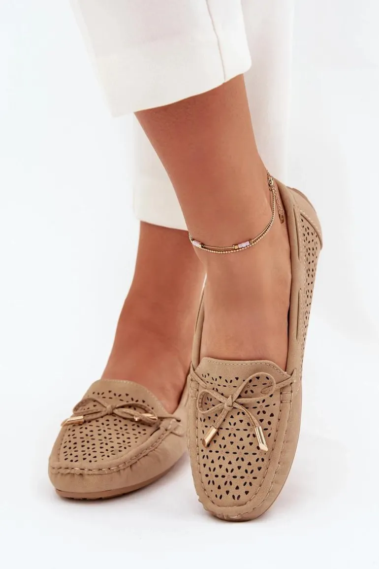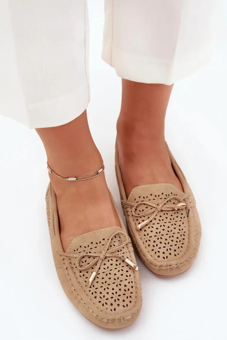 Mokasyny damskie wykonane z eko skóry, ozdobione ażurowym wzorkiem, to doskonała propozycja na wiosnę i lato. Z przodu znajdują się wiązanie w formie kokardki, które dodaje subtelności i uroku. Miękka wkładka zapewnia komfort przez cały dzień, a zaokrąglone noski gwarantują wygodę. Doskonałe do casualowych stylizacji, świetnie komponują się z sukienkami, spódnicami i spodniami, wprowadzając do każdej kreacji lekkość i elegancję. Przy wyborze rozmiaru prosimy sugerować się tabelą rozmiarów.