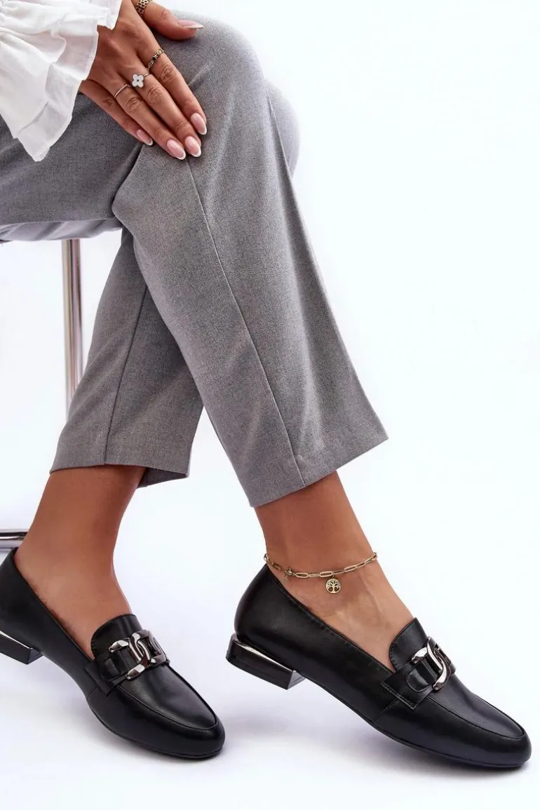 Mokasyny Damskie Z Ozdobą Czarne Camilena
