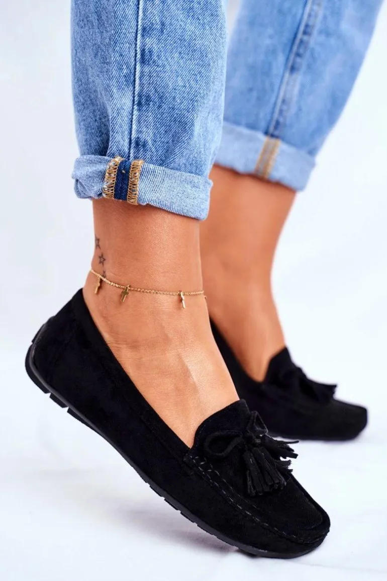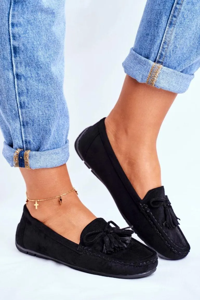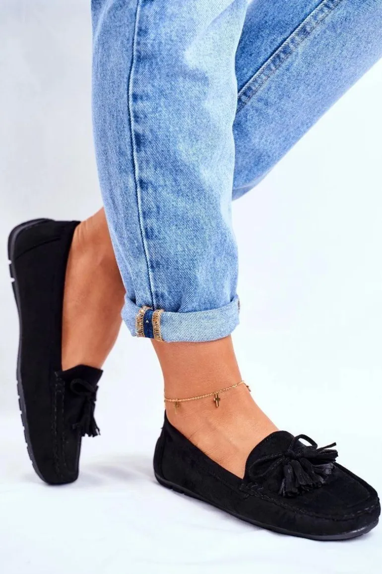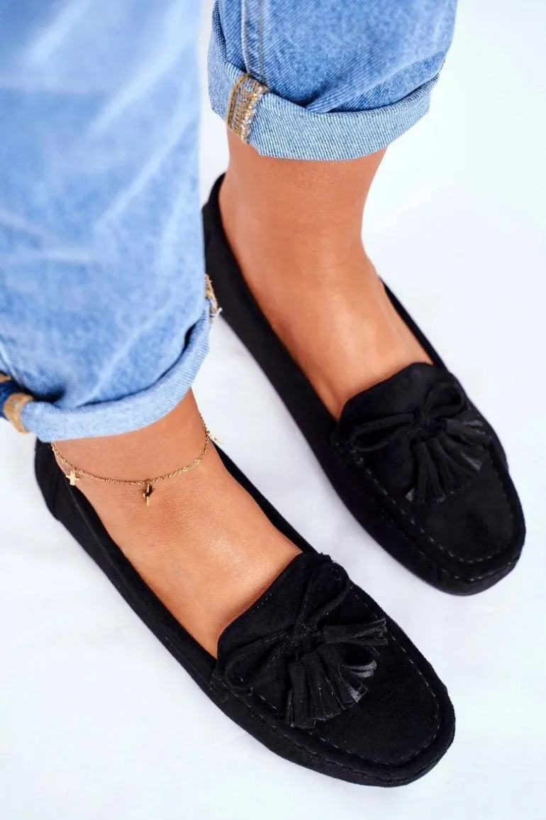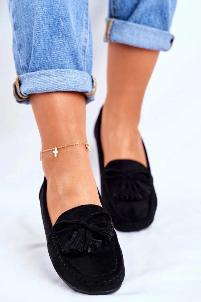 Mokasyny Damskie Zamszowe 20PB35-2003 Czarne Donna Mia