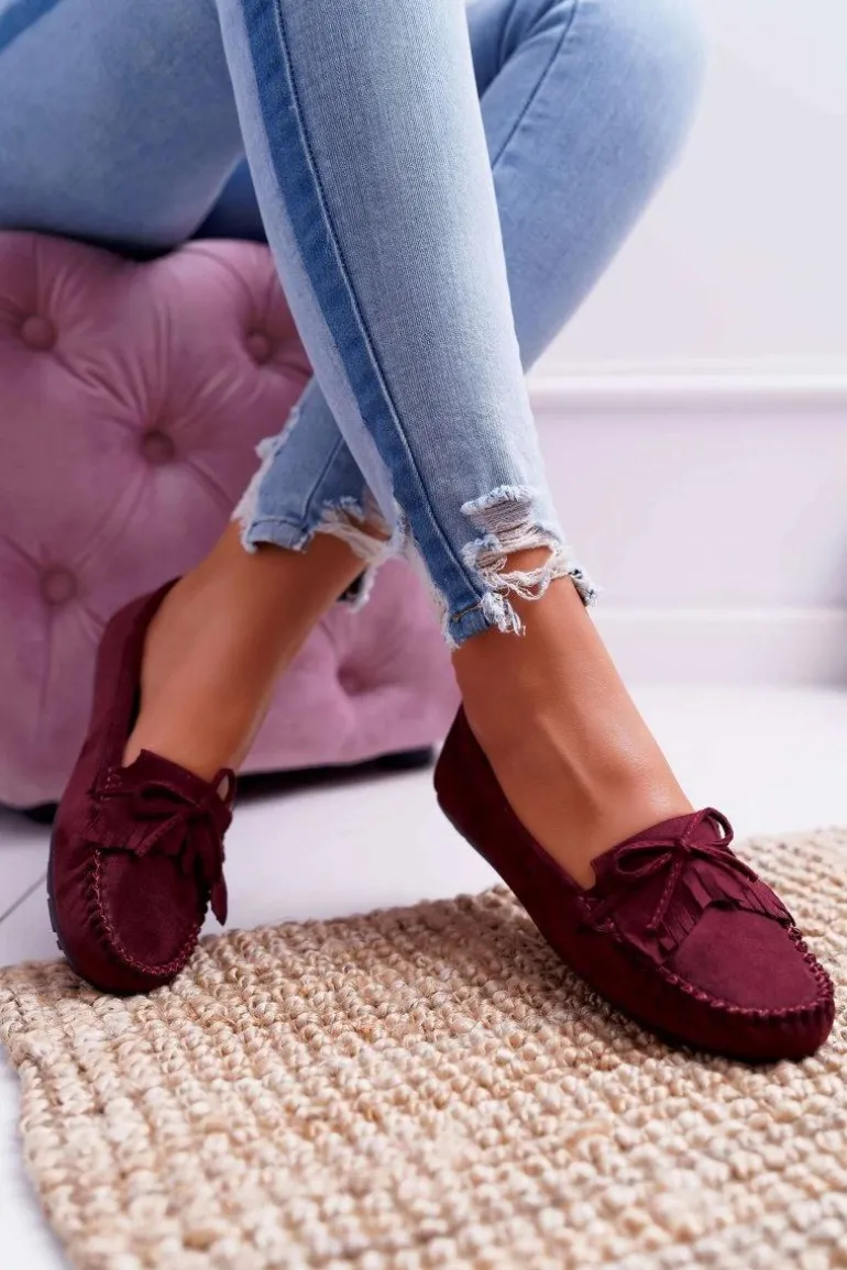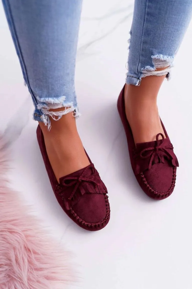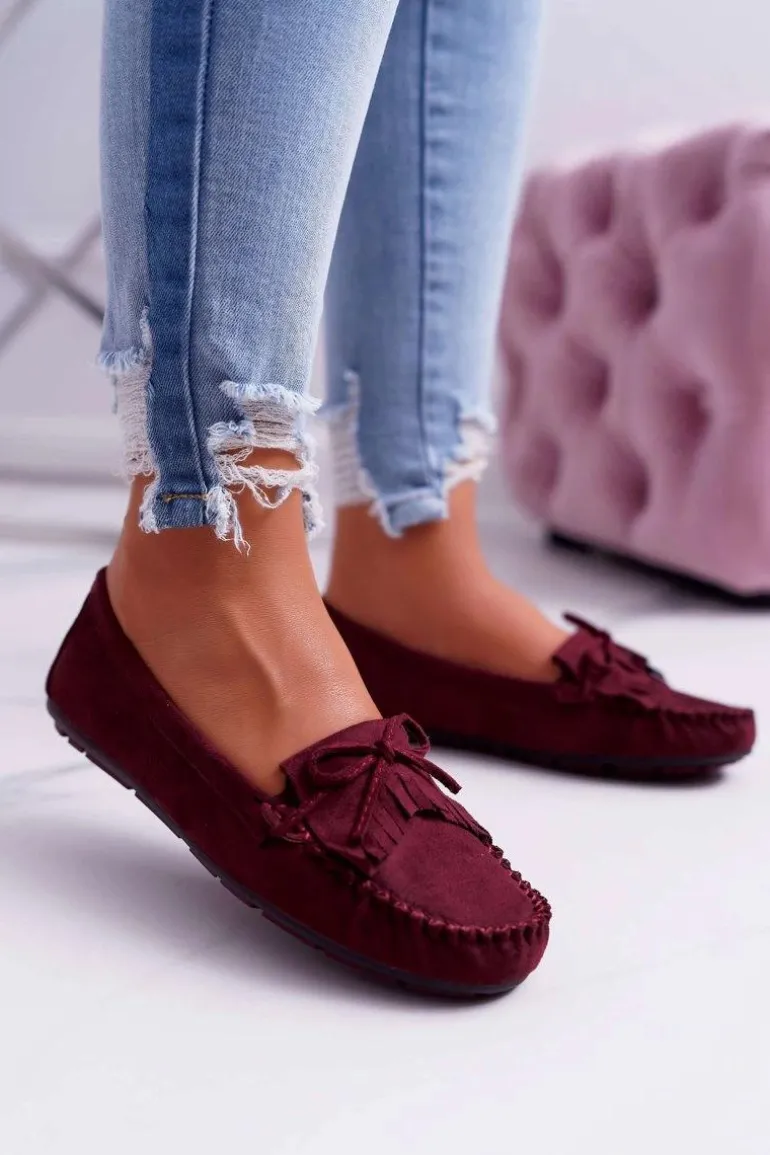 Mokasyny Damskie Zamszowe Bordowe Espanto