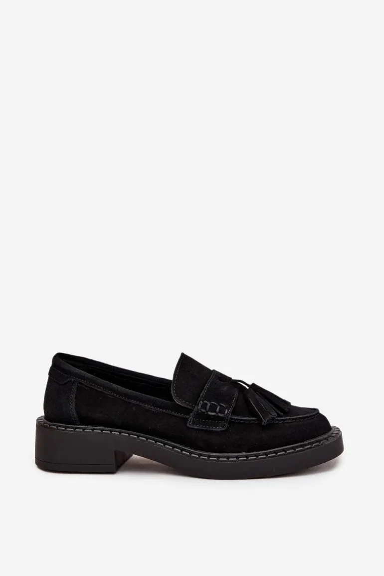 Mokasyny damskie wykonane z naturalnego zamszu. Osadzone na płaskim, stabilnym obcasie. Frędzle dodają im unikalnego uroku. Te mokasyny będą idealnym dopełnieniem wielu różnych stylizacji, zarówno casualowych, jak i bardziej eleganckich. Przy wyborze rozmiaru prosimy sugerować się tabelą rozmiarów.