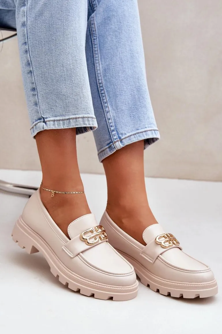 Mokasyny damskie wykonane z eko skóry. Osadzone na płaskim obcasie. Model ten wyróżnia się złotym detalem, który nadaje elegancji. Dzięki miękkiej wkładce mokasyny są wyjątkowo komfortowe, zapewniając wygodę noszenia przez cały dzień. Te mokasyny będą doskonałym wyborem dla kobiet, które cenią elegancki i jednocześnie praktyczny styl. Przy wyborze rozmiaru prosimy sugerować się tabelą rozmiarów.
