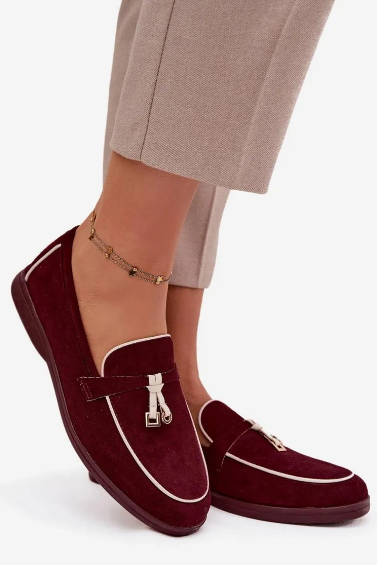 Stylowe damskie loafersy wykonane z eko zamszu. Model na płaskim obcasie gwarantuje wygodę przez cały dzień, a subtelny, ozdobny detal z przodu nadaje im modnego akcentu. Zaokrąglone noski podkreślają klasyczny krój, dzięki czemu buty doskonale pasują zarówno do casualowych, jak i bardziej eleganckich stylizacji. Przy wyborze rozmiaru prosimy sugerować się tabelą rozmiarów.