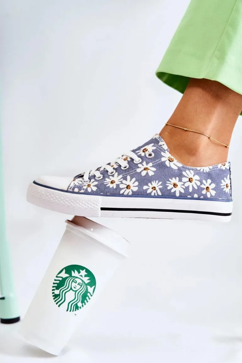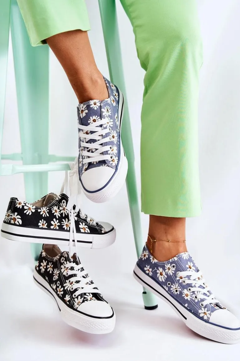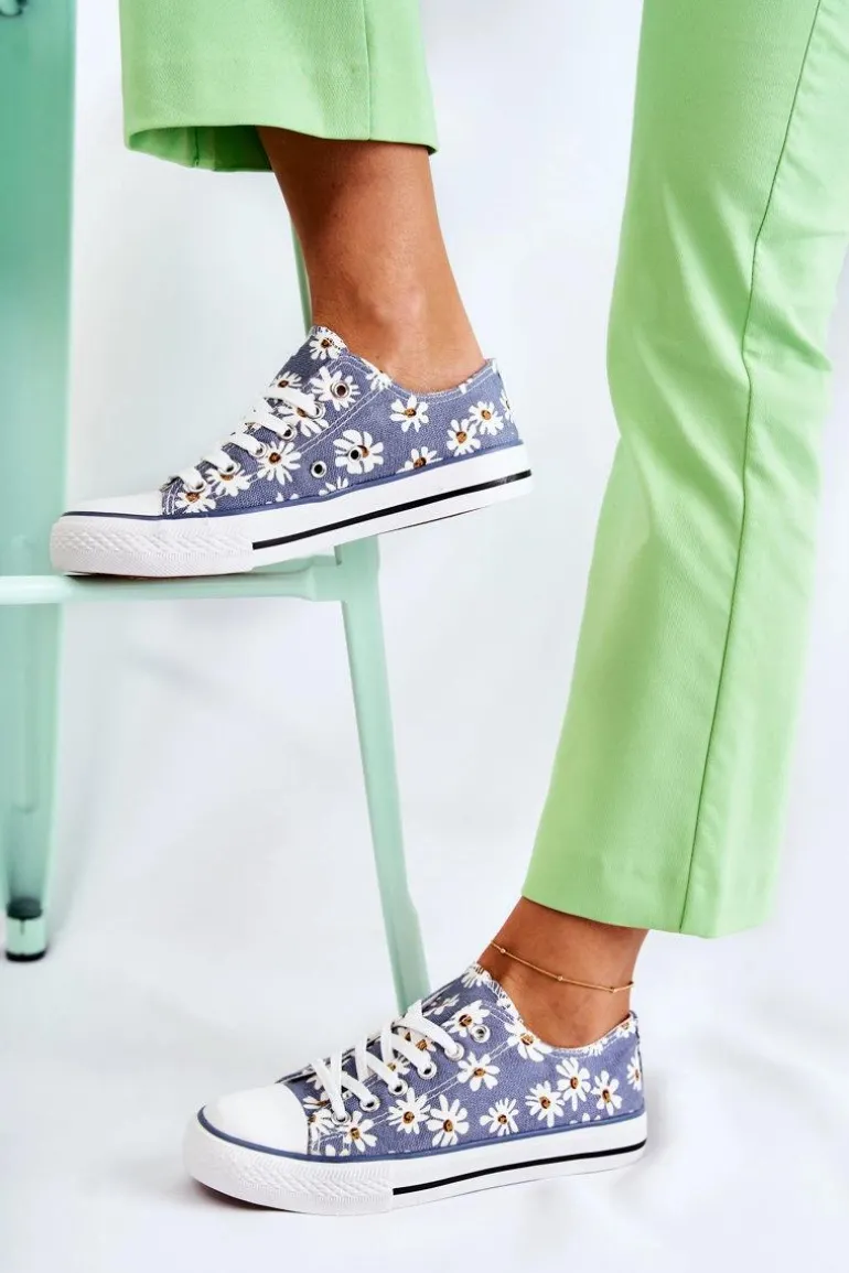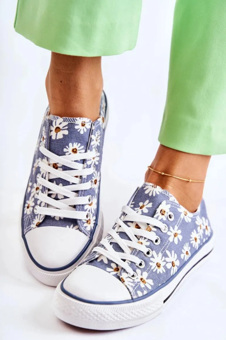 Niskie Damskie Trampki W Kwiaty Niebieskie Janey