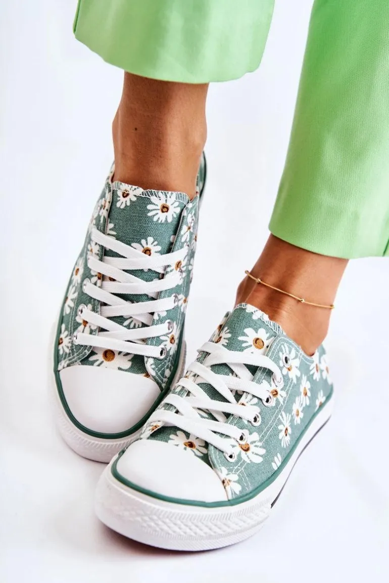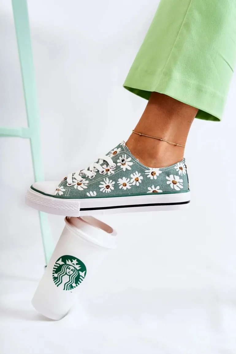 Damskie trampki o klasycznym fasonie i modnym wzorze w kwiaty. Kultowe już trampki pasują do wielu stylizacji. Buty dobrze dopasowują się do kształtu stopy. Zostały wykonane z materiału tekstylnego. Posiadają miękką, materiałową wkładkę oraz antypoślizgową podeszwę. Model wiązany. Nosek został wzmocniony gumowym tworzywem. Koniecznie sprawdź całą naszą kolekcję damskich trampek. Przy wyborze rozmiaru prosimy sugerować się tabelą rozmiarów.