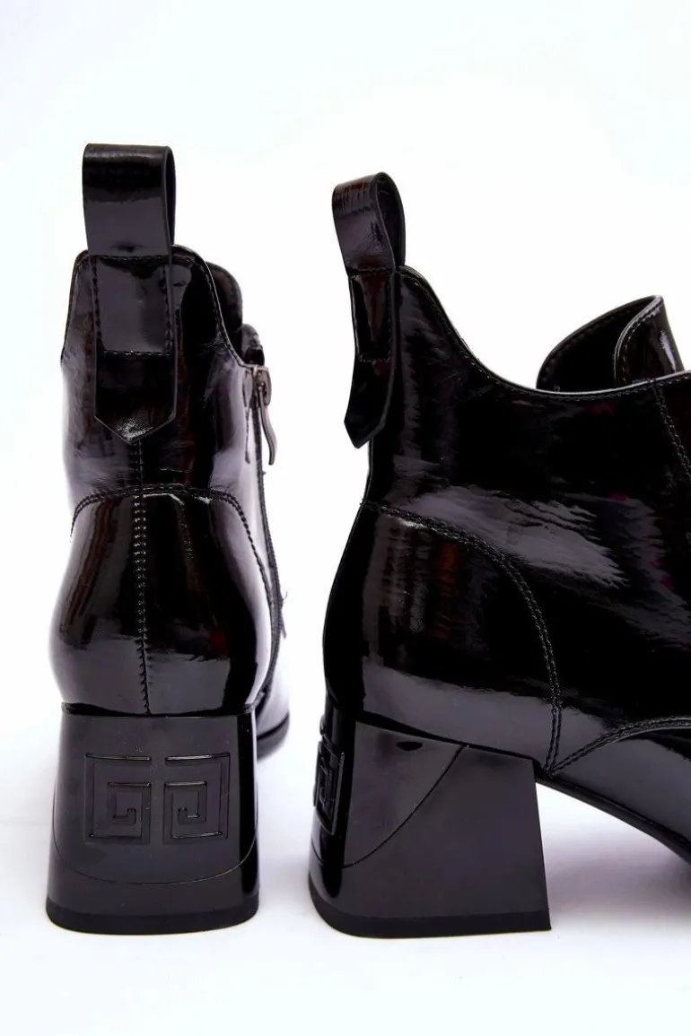 Botki damskie z niską cholewką wykonane z eko skóry. Osadzone na obcasie w postaci klocka. Noski w migdał. Środek ocieplony kocem obuwniczym. Model zapinany na suwak z boku oraz dodatkowo sznurowany. Miękka wkładka zapewni komfortowe użytkowanie obuwia. Zapiętek jest usztywniony. Przy wyborze rozmiaru prosimy sugerować się tabelą rozmiarów.
