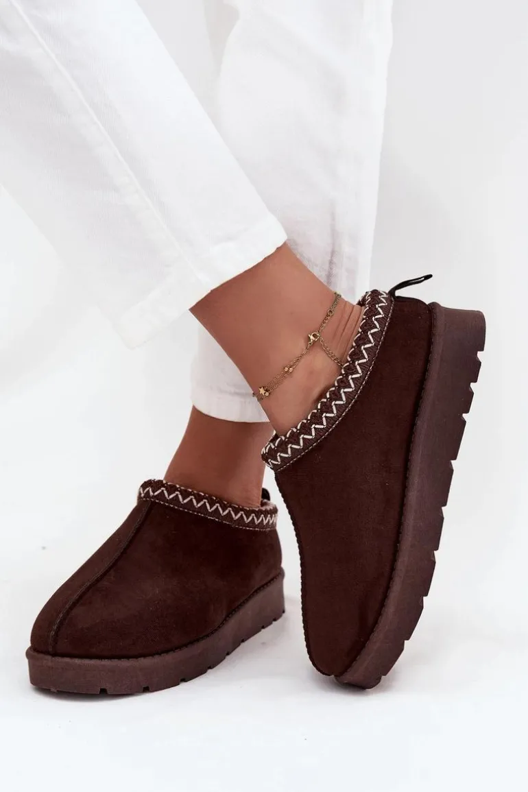 Niskie śniegowce damskie wykonane z eko zamszu to praktyczna i stylowa propozycja na zimę. Osadzone na delikatnej platformie zapewniają wygodę i izolację od chłodnego podłoża, a miękkie futerko wewnątrz gwarantuje ciepło i komfort w mroźne dni. Uwagę przyciąga ozdobny haft na górze cholewki, który dodaje całości modnego i niepowtarzalnego charakteru. To śniegowce idealne na codzienne, zimowe wyjścia. Przy wyborze rozmiaru prosimy kierować tabelą rozmiarów.