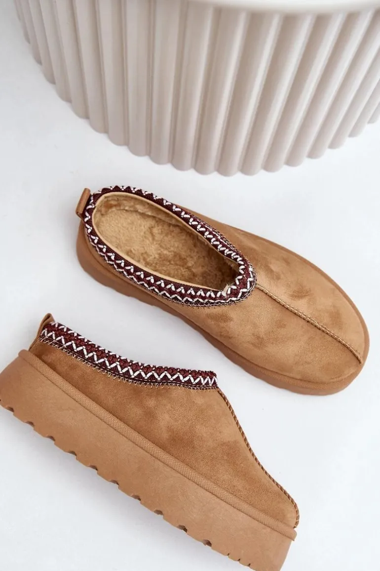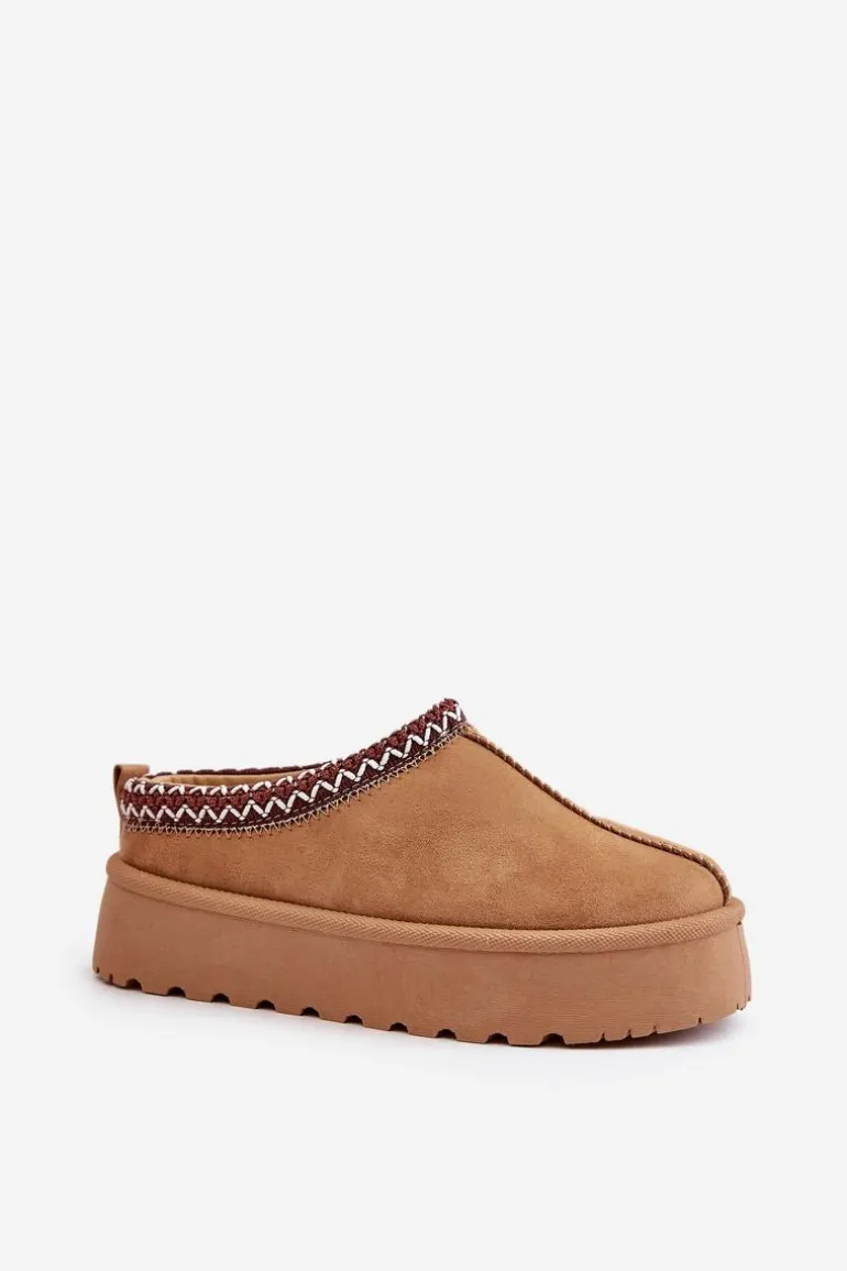 Niskie Śniegowce Damskie Z Haftem Na Platformie Camel Narirya