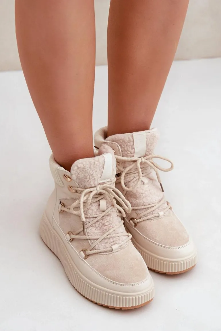 Niskie śniegowce na platformie to idealne obuwie na zimowe dni. Model wyróżnia się językiem ozdobionym miękkim futerkiem typu baranek, które nadaje mu przytulny i stylowy wygląd. Środek ocieplany kocem obuwniczym. Sznurowanie z dodatkowymi haczykami pozwala na precyzyjne dopasowanie butów do stopy. Funkcjonalne, modne i komfortowe – doskonałe na zimowe spacery i codzienne stylizacje. Przy wyborze rozmiaru prosimy sugerować się tabelą rozmiarów.