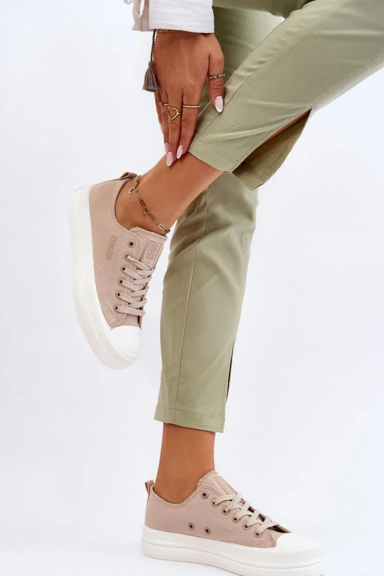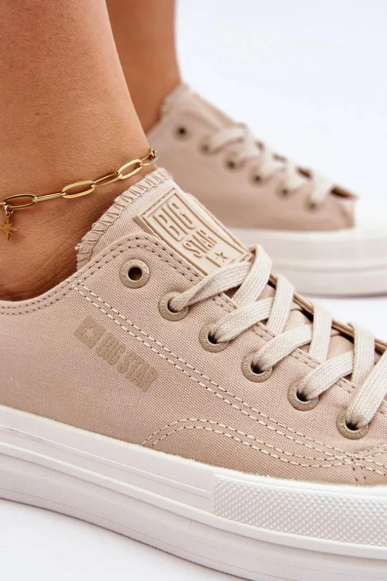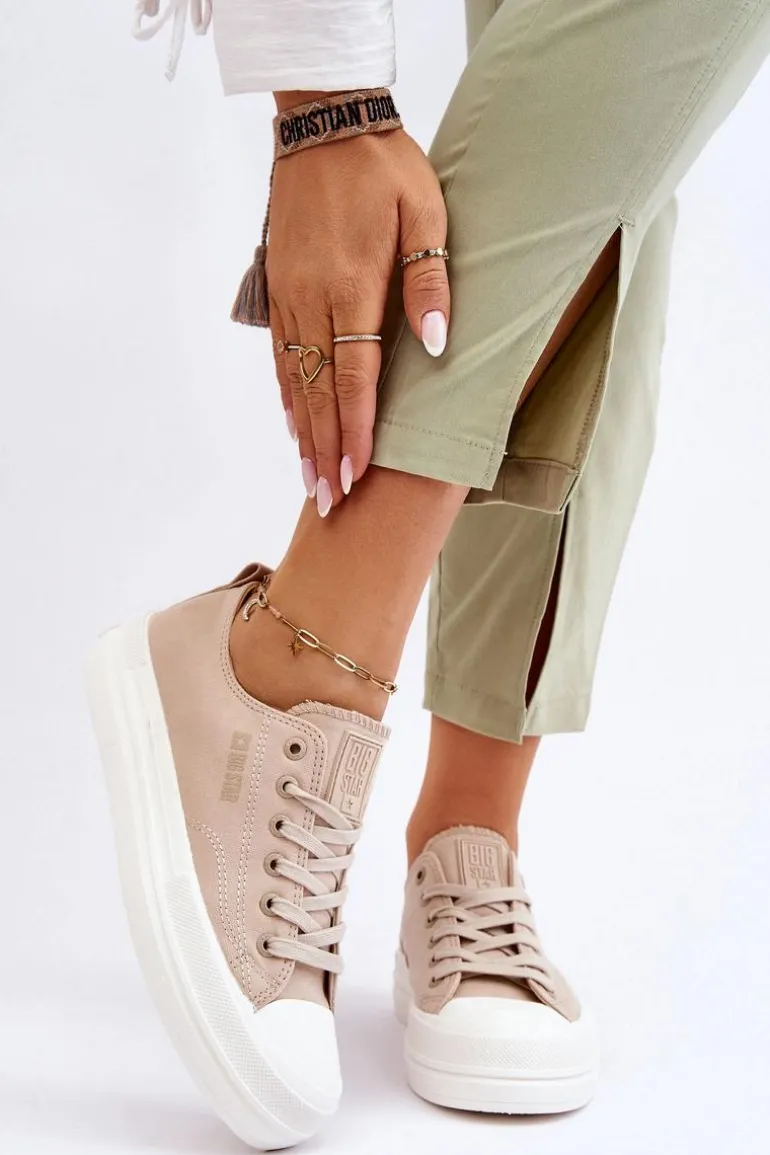 Damskie trampki polskiej marki BIG STAR. Wykonane zostały z materiału tekstylnego. Posiadają materiałową wkładkę oraz sznurowanie. Osadzone na platformie oraz antypoślizgowej podeszwie. Trampki pasują do wielu stylizacji, dlatego koniecznie powinnaś mieć ten model w swojej garderobie! Sprawdź także pozostałe nasze oferty z trampkami marki Big Star! Przy wyborze rozmiaru prosimy sugerować się tabelą rozmiarów.
