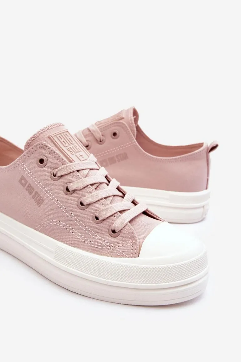 Damskie trampki polskiej marki BIG STAR. Wykonane zostały z materiału tekstylnego. Posiadają materiałową wkładkę oraz sznurowanie. Osadzone na platformie oraz antypoślizgowej podeszwie. Trampki pasują do wielu stylizacji, dlatego koniecznie powinnaś mieć ten model w swojej garderobie! Sprawdź także pozostałe nasze oferty z trampkami marki Big Star! Przy wyborze rozmiaru prosimy sugerować się tabelą rozmiarów.