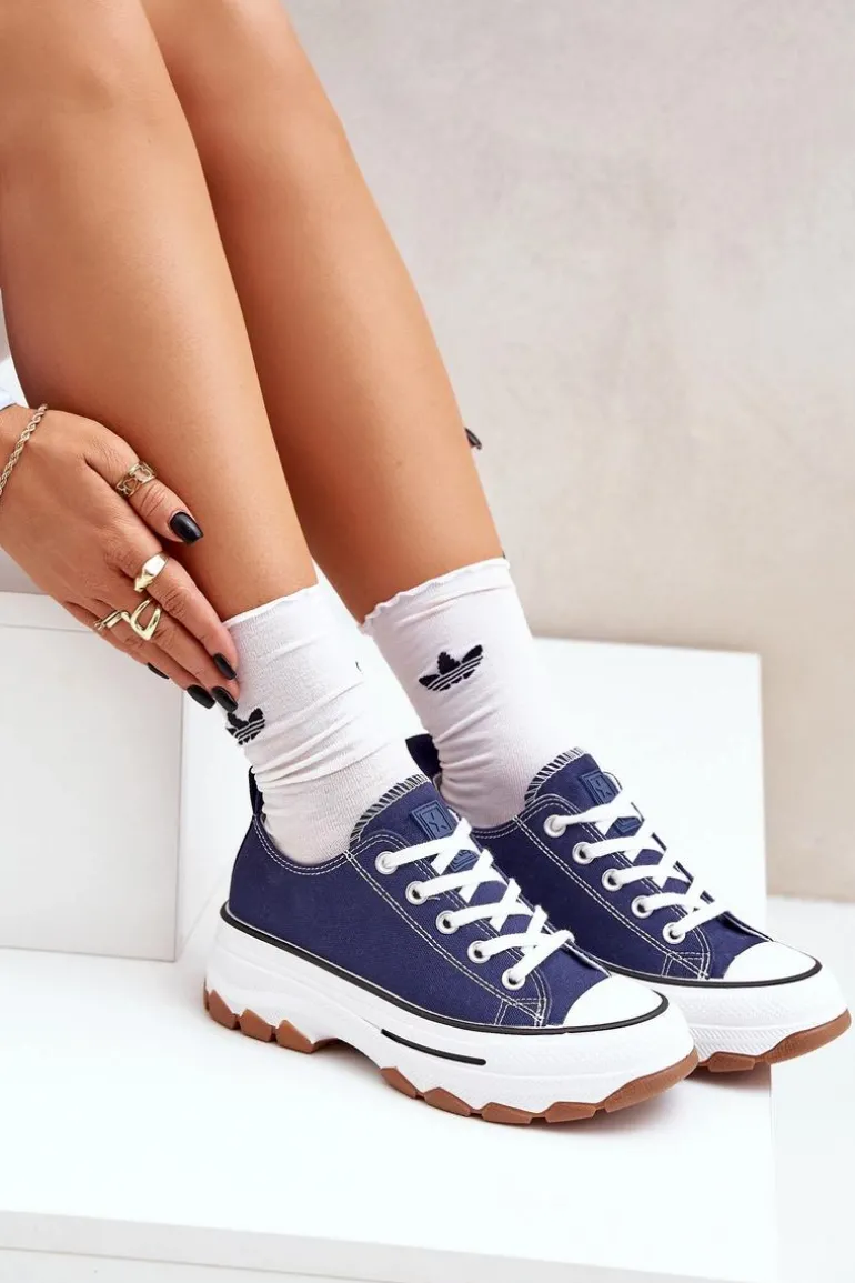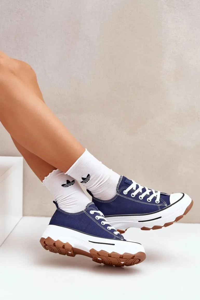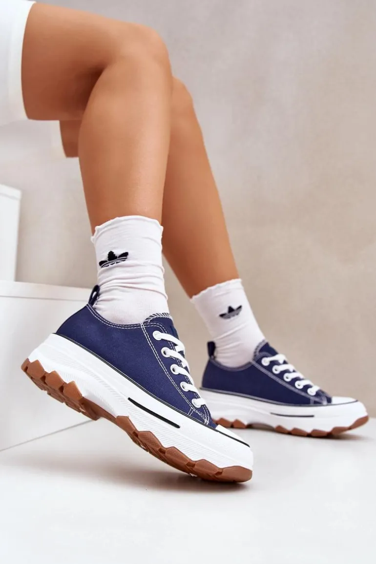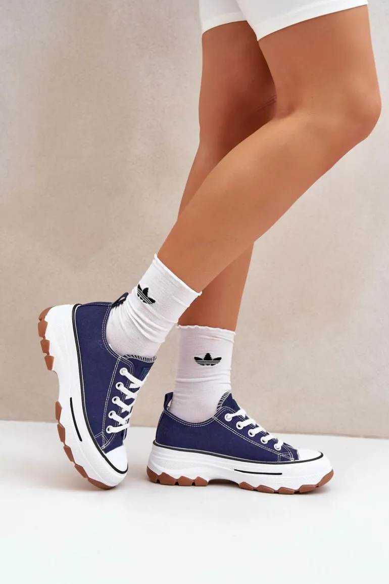 Niskie Trampki Damskie Na Platformie Granatowe Aradwin