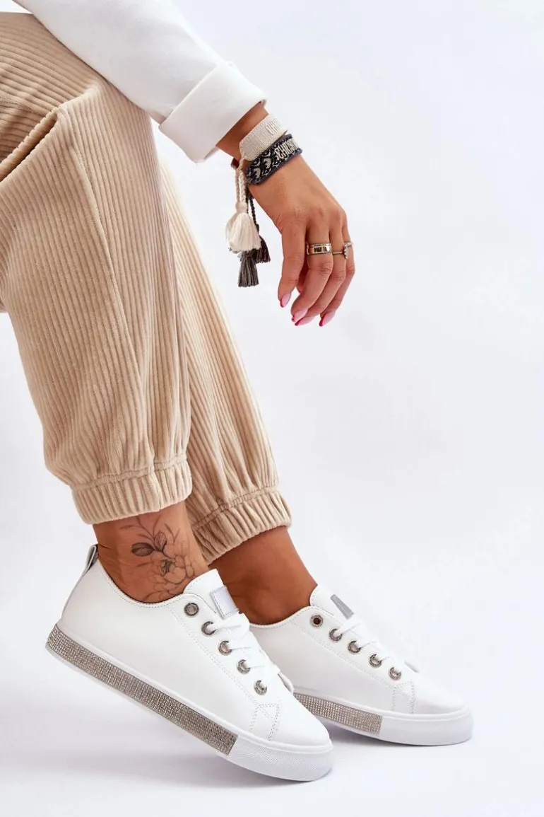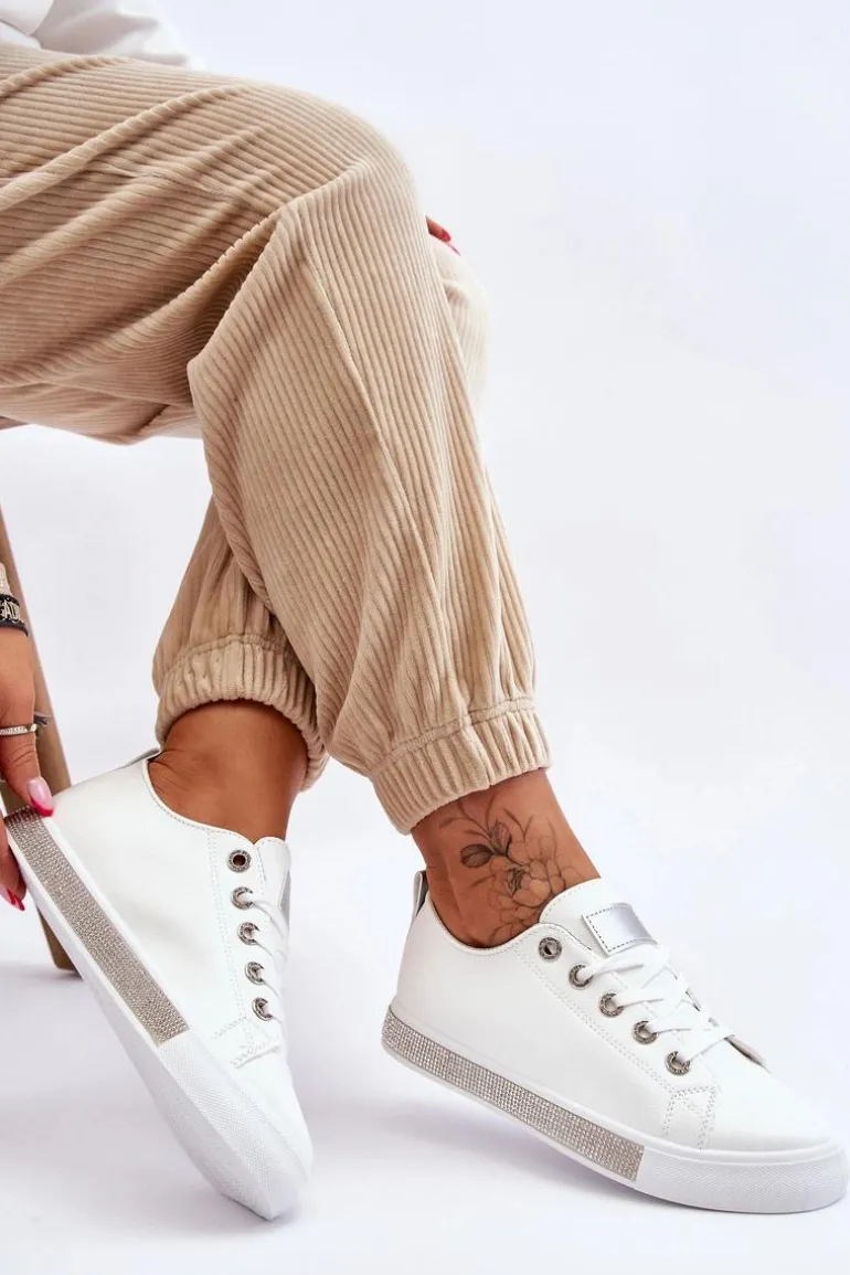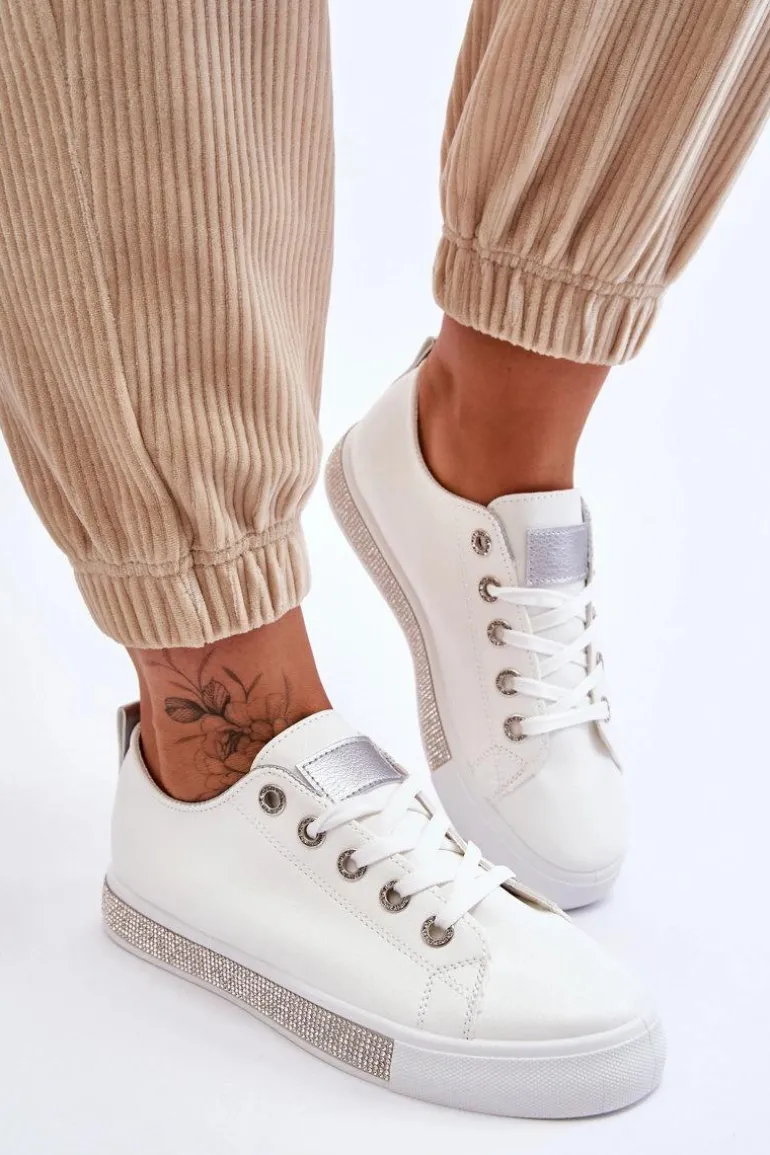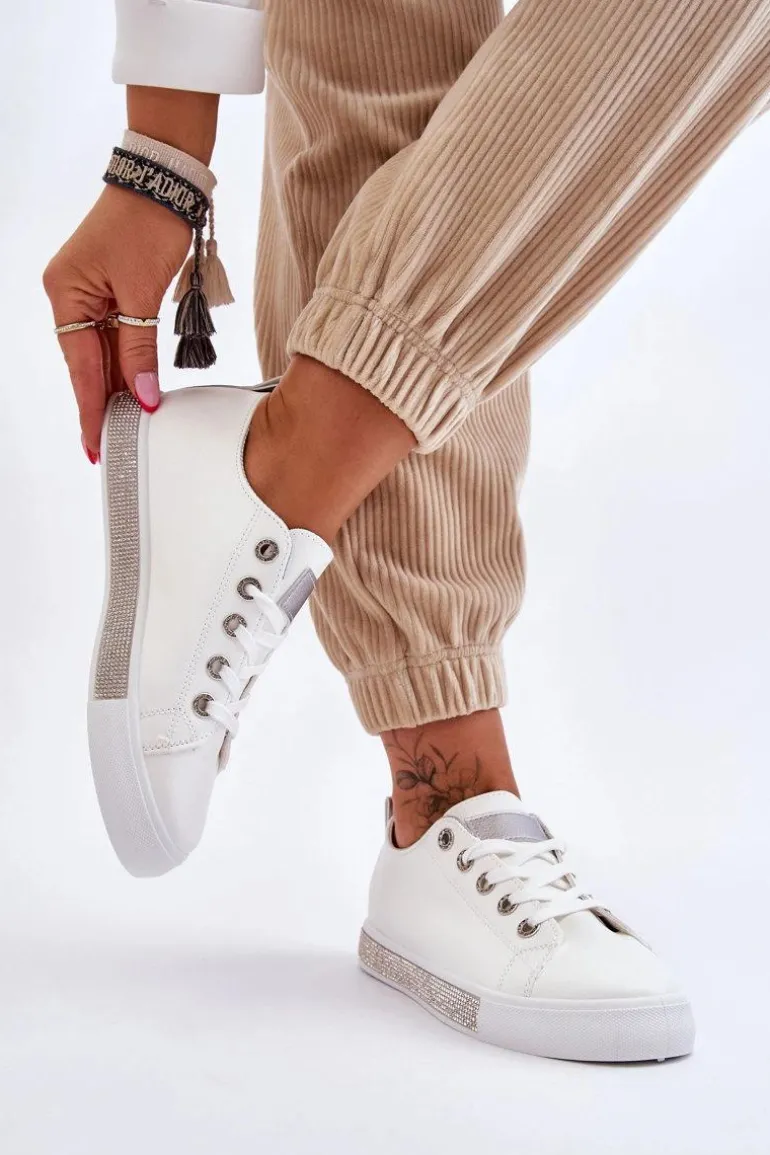 Niskie Trampki Damskie Z Dżetami Biało-Srebrne Demira