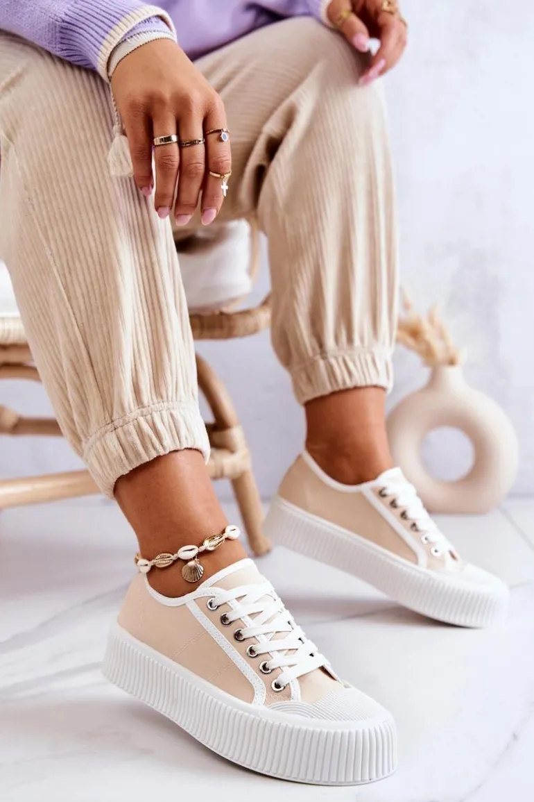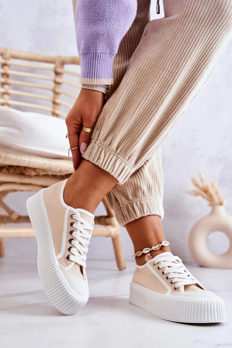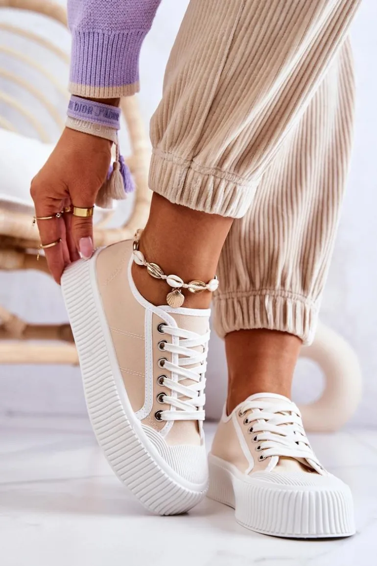 Modne trampki na masywnej, gumowej platformie. Buty posiadają materiałową cholewkę oraz antypoślizgową podeszwę. Świetny model, który będzie pasował do wielu stylizacji! Nosek jest wzmacniany gumowym tworzywem. Trampki posiadają klasyczne wiązanie. Koniecznie sprawdź całą naszą kolekcję trampek! Przy wyborze rozmiaru prosimy sugerować się tabelą rozmiarów.