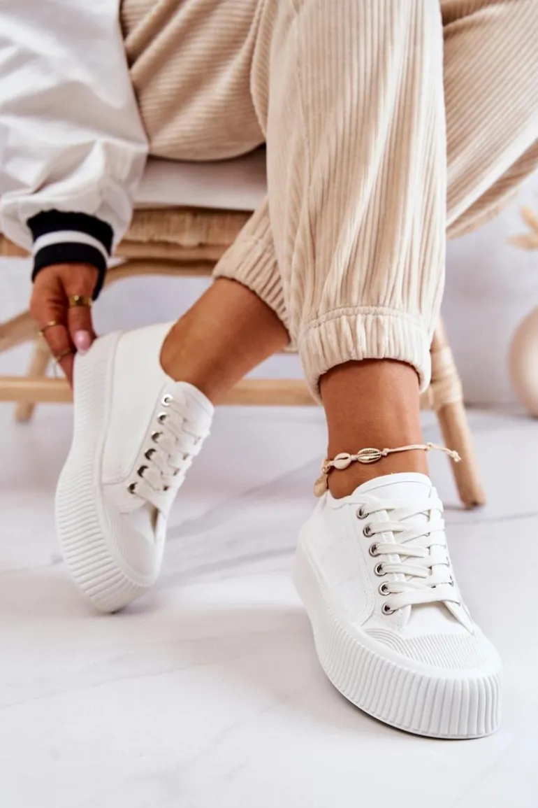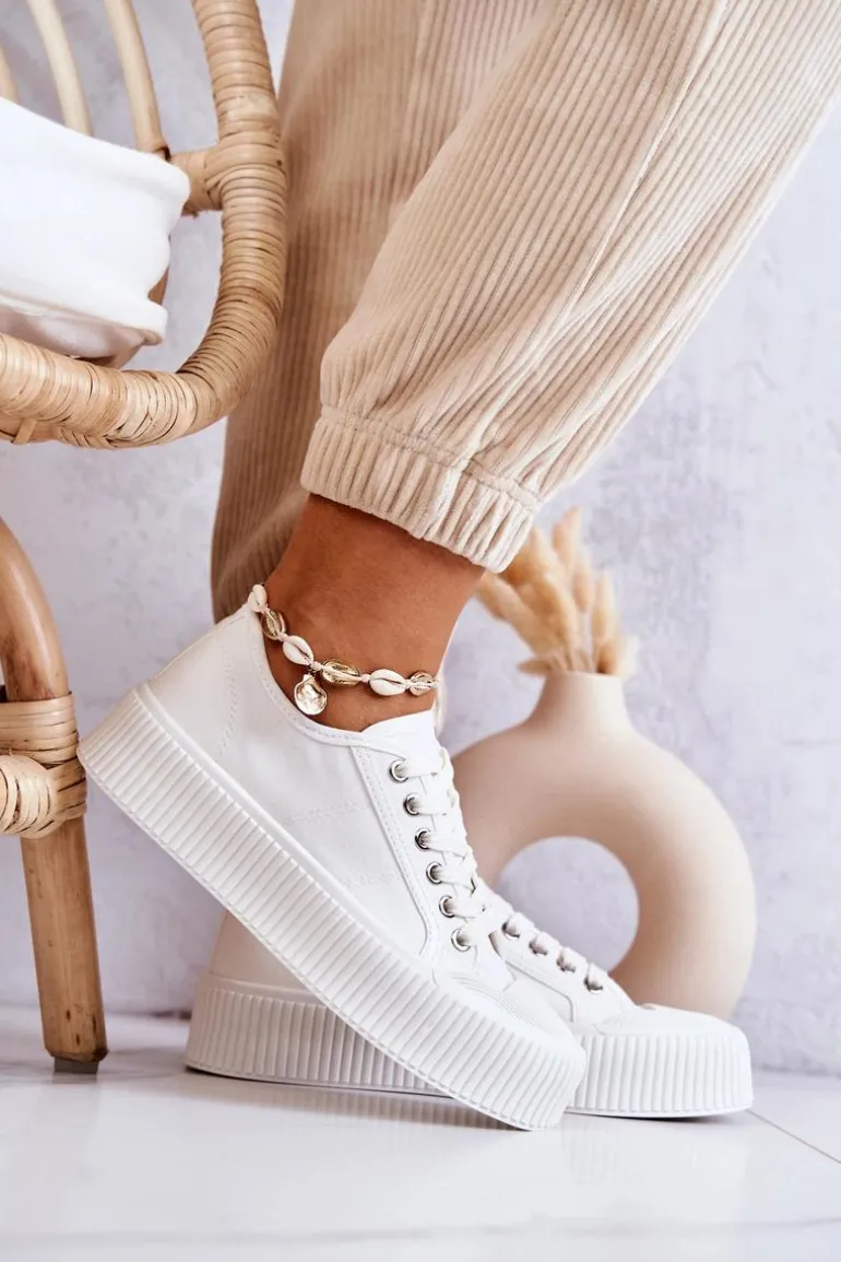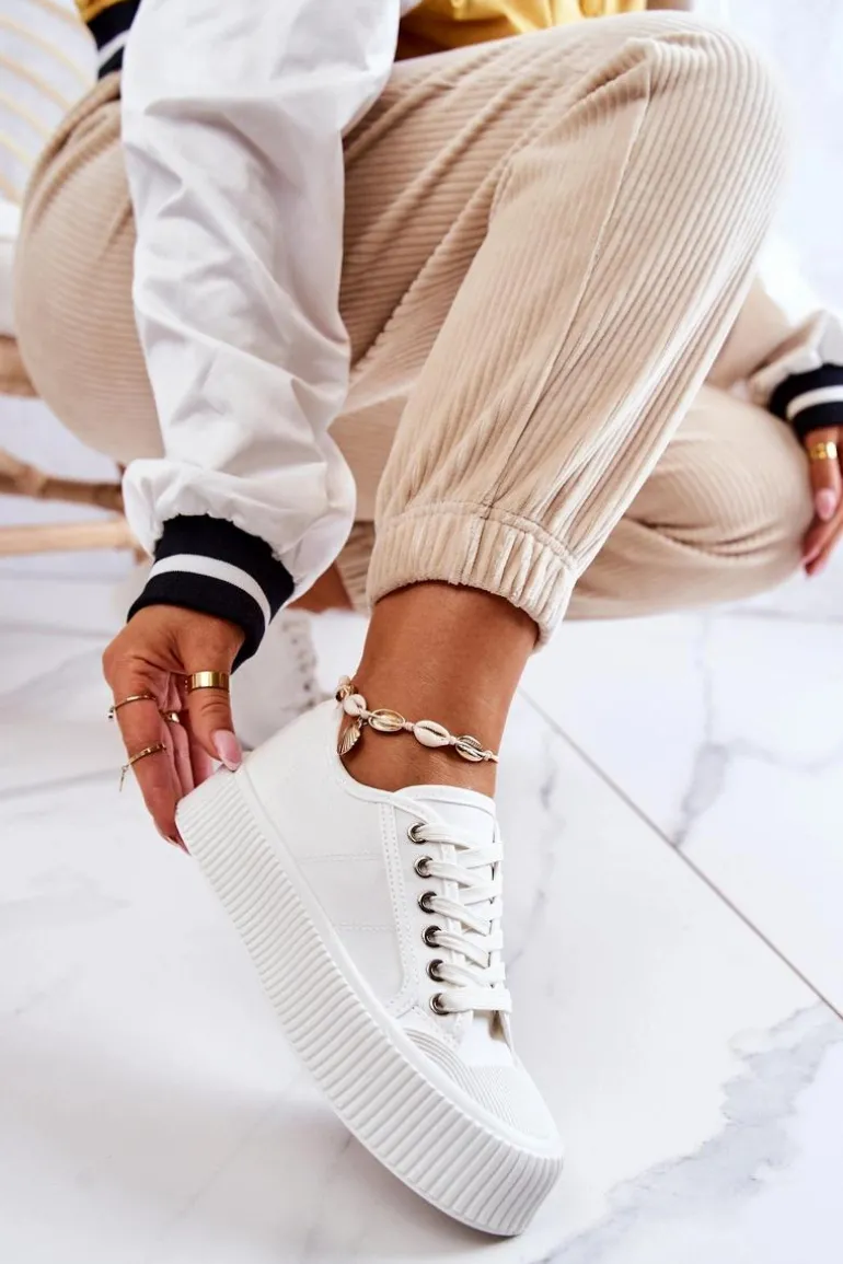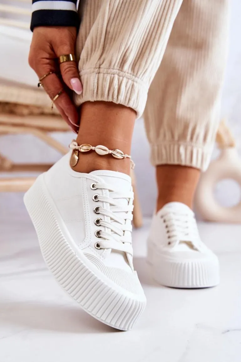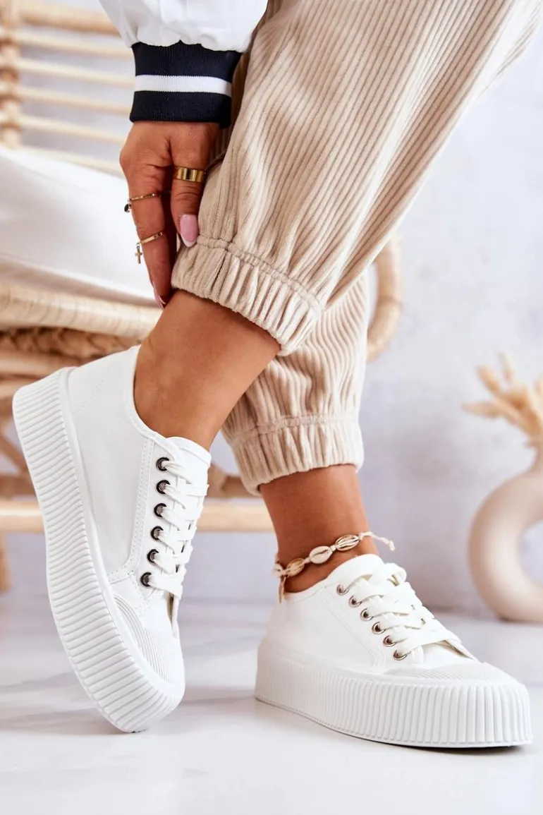 Modne trampki na masywnej, gumowej platformie. Buty posiadają materiałową cholewkę oraz antypoślizgową podeszwę. Świetny model, który będzie pasował do wielu stylizacji! Nosek jest wzmacniany gumowym tworzywem. Trampki posiadają klasyczne wiązanie. Koniecznie sprawdź całą naszą kolekcję trampek! Przy wyborze rozmiaru prosimy sugerować się tabelą rozmiarów.